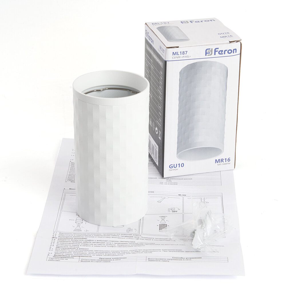 Светильник потолочный Feron ML187 Barrel PIXEL MR16 GU10 35W 230V белый ml187 barrel pixel mr16, gu10, 35w, 230v, белый