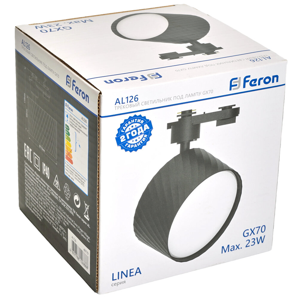 Светильник Feron AL126 трековый однофазный на шинопровод под лампу GX70 черный 48779