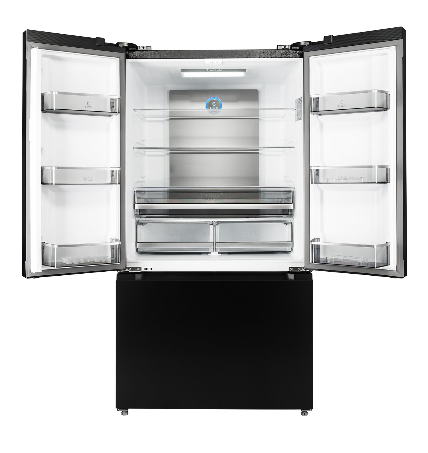 Большой объем холодильника LFD595 — 581 литр — позволяет хранить много продуктов и напитков даже для большой семьи. Оба отделения оснащены системой Total No Frost, которая исключает появление инея благодаря равномерному распределению холодного воздуха по всему внутреннему пространству.Конструкция French Door дает возможность легко и эффективно хранить продукты в холодильной и морозильной камерах. Модель в черном или стальном цвете прекрасно дополнит практически любой кухонный интерьер. Электронное управление двумя контурами охлаждения помогает точно настраивать температуру внутри каждой камеры. Холодильник имеет удобный дисплей и яркую LED-подсветку, которые упрощают контроль условий хранения. Функции суперохлаждения и суперзаморозки позволяют быстро снижать температуру, сохраняя вкус и питательные свойства продуктов.Инверторный компрессор делает работу холодильника энергоэффективной и тихой. Модель может поддерживать температуру в течение 12 часов, если дома отключится свет, поэтому у вас не будет поводов беспокоиться даже в непредвиденной ситуации.Все эти преимущества делают холодильник LFD595 отличным выбором для тех, кто по-настоящему ценит удобство, стиль и надежность.