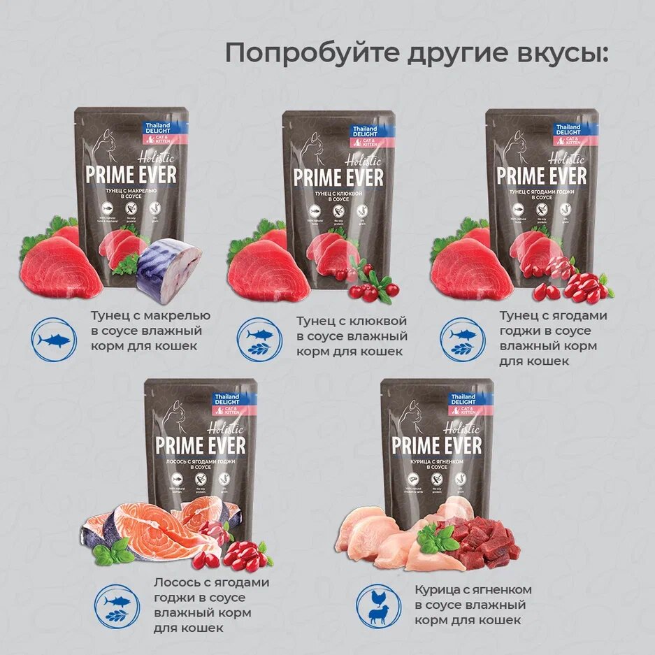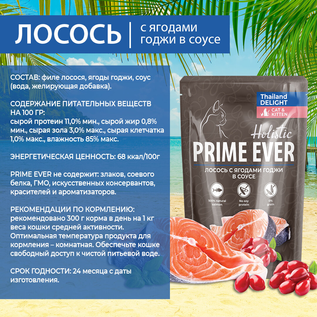 Сервис сравнения цен СкидкаГИД предлагает сравнить цены на товар «Влажный корм для кошек Prime Ever Holistic Лосось с ягодами годжи в соусе 0085 кг»