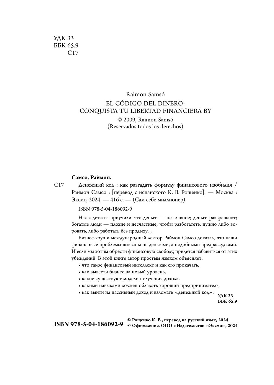 Денежный код. Как разгадать формулу финансового изобилия (Самсо Раймон); ООО "Издательство "Эксмо", 2024