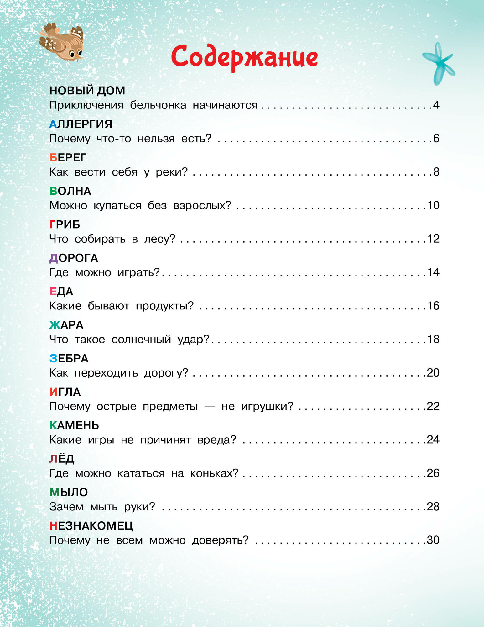 Жизнь в сказочном лесу полна маленьких радостей. Зверята катаются на коньках, гоняют на самокате, пьют ароматный чай и мечтают поскорее вырасти. А еще они ходят в школу и изучают "Азбуку безопасности", которую должен знать каждый супергерой! Ведь даже в доброй сказке может быть много опасностей, к которым нужно быть готовыми. Что делать, если к тебе подошел незнакомец? Зачем мыть руки? Чем опасно электиречество? Как правильно переходить дорогу? Вместе с непоседливым бельчонком и его друзьями ребята переживут увлекательные приключения и научатся самым важным правилам поведения. Подарите ребенку незабываемое путешествие от А до Я! Для дошкольного возраста.