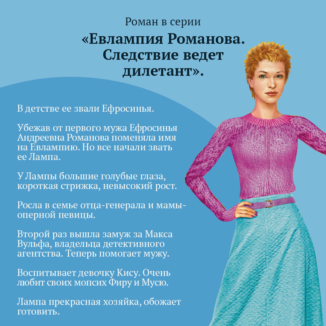 Если у человека есть огромные счета в разных банках, то все его гадкие поступки считаются милыми шутками. И явно именно такой человек решил сломать жизнь модели Светлане Морозовой. Девушка обратилась в детективное агентство Макса Вульфа с просьбой найти негодяя. Дело в том, что Светлана была широко востребована на рекламном рынке, дела ее шли очень хорошо, а заработки были выше всяческих ожиданий. Но недавно сразу несколько компаний разорвали с ней контракты без объяснения причин. А причину она узнала от своей коллеги, которую взяли на ее место. Оказывается, в тусовке прошел слух, что у Светланы СПИД. Но это неправда! Света сделала анализ и результаты выложила в соцсетях, но и это не помогло. Лампа с коллегами стали распутывать цепочку знакомств и связей Морозовой и выяснили такое, что дело из поиска обычного недоброжелателя переросло практически в уголовное. А главным злодеем оказался самый невинный на первый взгляд персонаж. Дарья Донцова - самый популярный и востребованный автор в нашей стране, любимица миллионов читателей. В России продано более 200 миллионов экземпляров ее книг. Ее творчество наполняет сердца и души светом, оптимизмом, радостью, уверенностью в завтрашнем дне! "Донцова невероятная работяга! Я не знаю ни одного другого писателя, который столько работал бы. Я отношусь к ней с уважением, как к образцу писательского трудолюбия. Женщины нуждаются в психологической поддержке и получают ее от Донцовой. Я и сама в свое время прочла несколько романов Донцовой. Ее читают очень разные люди. И очень занятые бизнес-леди, чтобы на время выключить голову, и домохозяйки, у которых есть перерыв 15-20 минут между отвести-забрать детей". - Галина Юзефович, литературный критик
