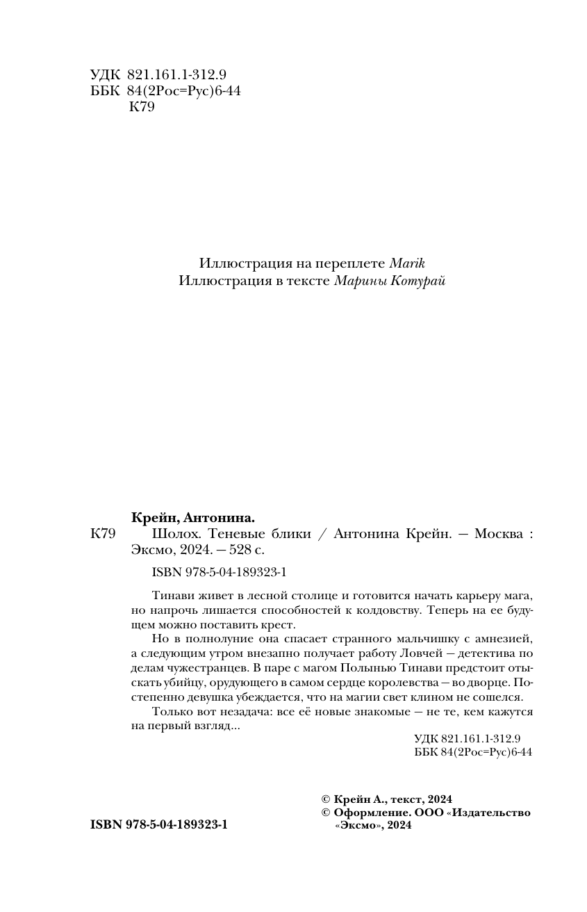 Книга: Шолох. Теневые блики (Антонина Крейн); Эксмо, Черным-бело, Редакция 1, 2024