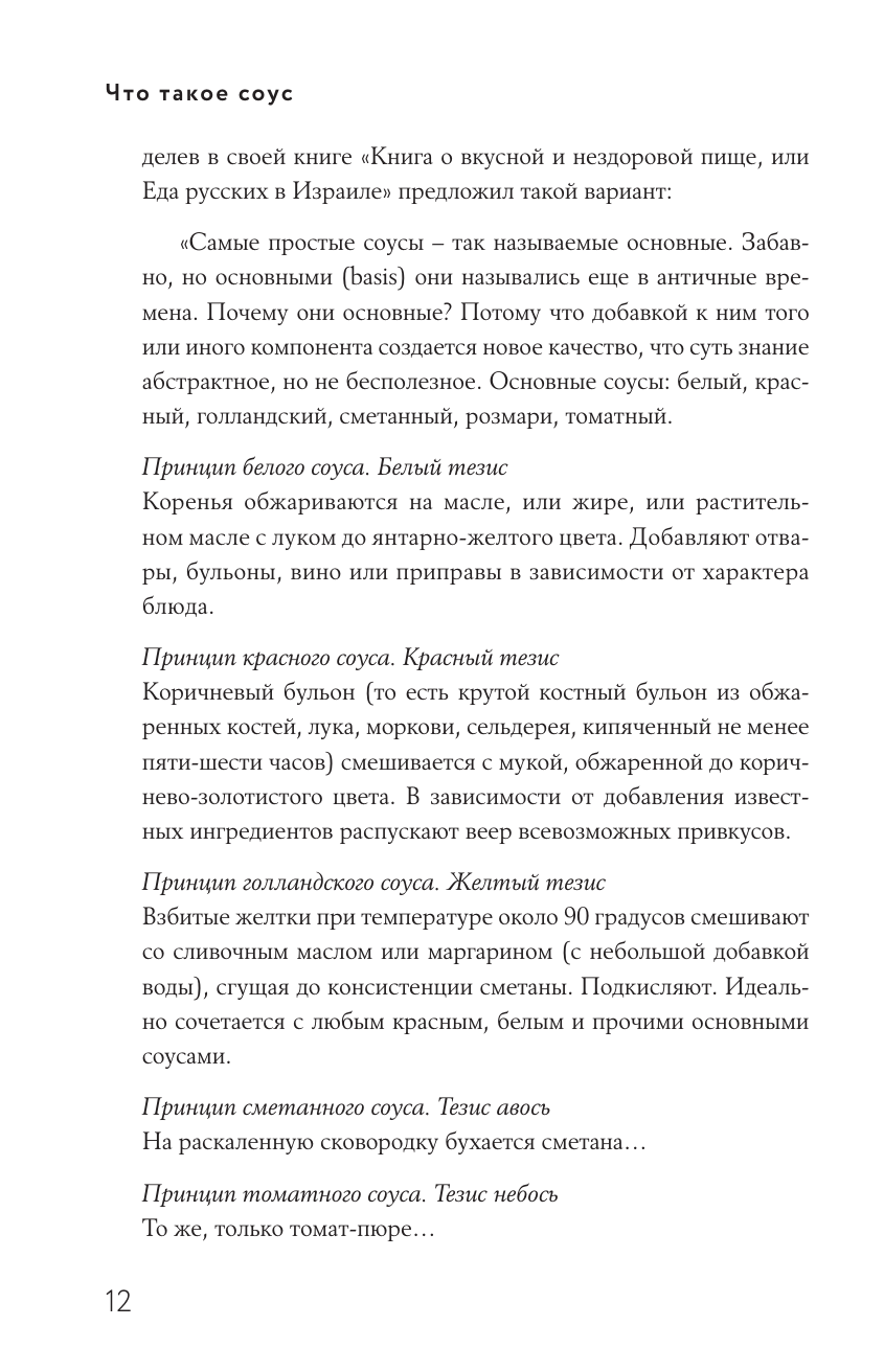 Мы знаем, что соус делает любое традиционное блюдо необычным. Мы также знаем несколько соусов, которые одобрили наши родные и друзья. Но мы по-прежнему задаемся вопросом: что же такое соус и почему он так изменяет вкус блюда в лучшую сторону? Данная книга отгадывает многие загадки, касающиеся этой тайны! Какими бывают соусы по консистенции. Каковы принципы основных соусов: белого, красного, голландского, сметанного. Самая простая, но исчерпывающая классификация соусов. Материнские соусы Огюста Эскофье. Чем и из чего готовить. И, наконец, рецепты эмульгированных, томатных, сырных и сливочных, кисло-сладких соусов, из трав и барбекю-соусов, а также дипы, сальсы и дрессинги. Весь мировой опыт сосредоточен в данном издании. Подобной подробной энциклопедии соусов со множеством фактов, советов, рекомендаций не было на книжном рынке.