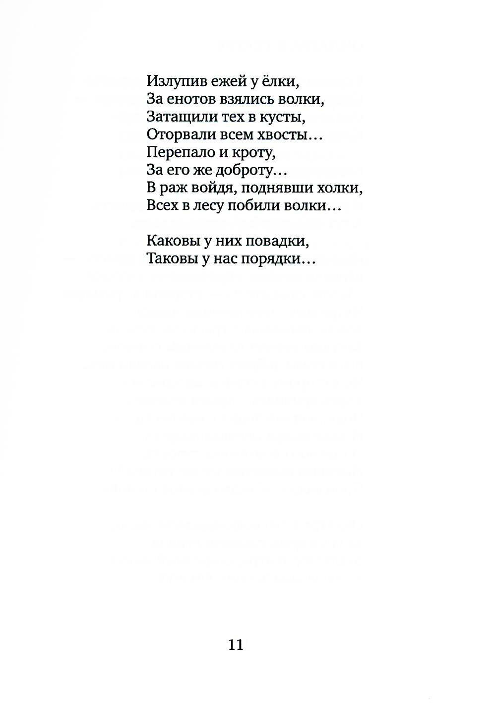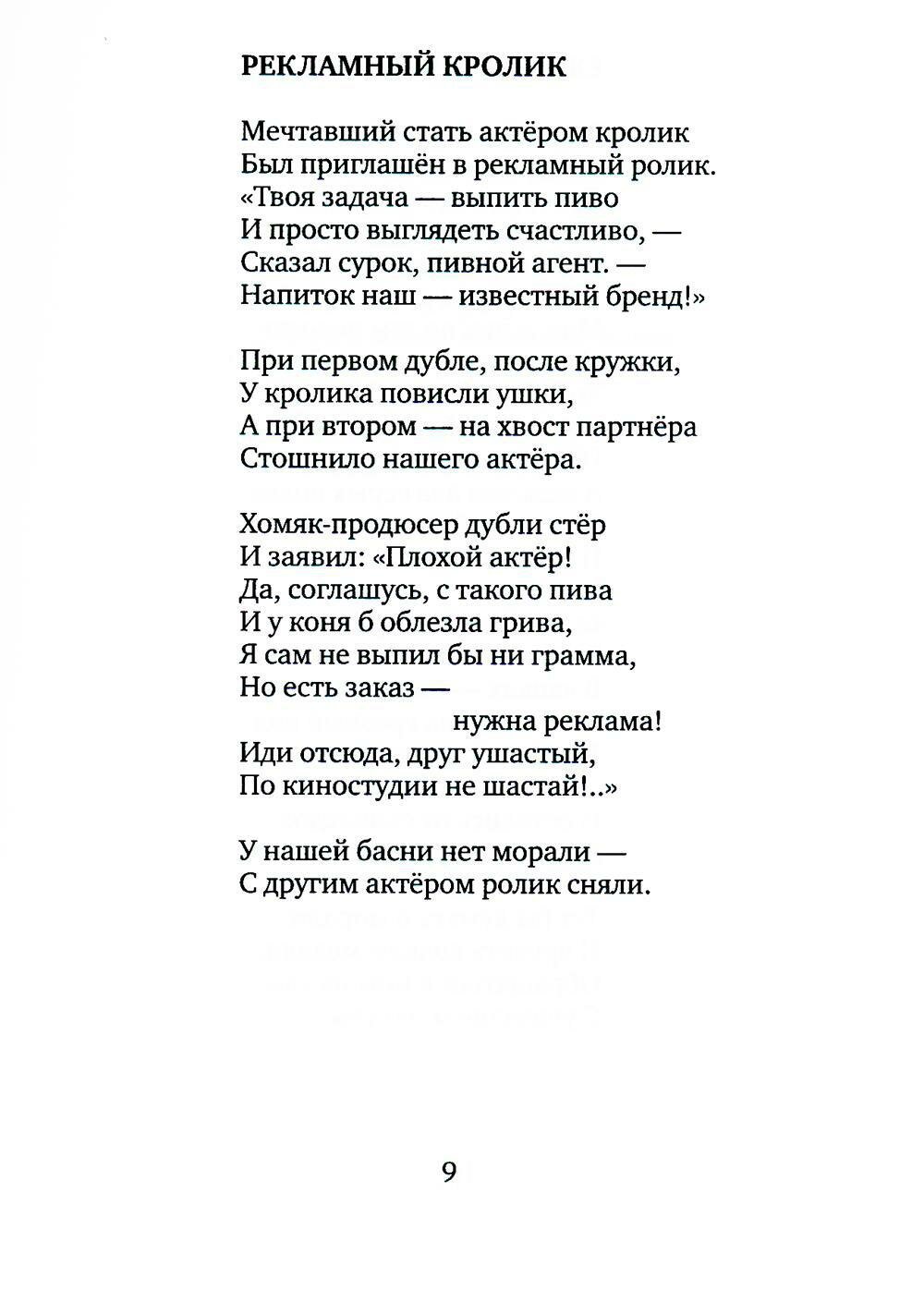 Сборник басен Влада Маленко вполне можно назвать иронической энциклопедией нашей действительности: крабы в бане, гламурная креветка, рекламный кролик, удав в армии, ежи-скинхеды У этих героев нетрудно разглядеть человеческие пороки, улыбнуться, задуматься и, быть может, сделать попытку освободиться от таковых. Особенно радует популярность басен среди молодой аудитории. В эпоху напористой сетевой информации эти новые русские басни, подхватывая эстафету от баснописцев прошлых времен, находят себе достойное место в современной сатирической литературе.