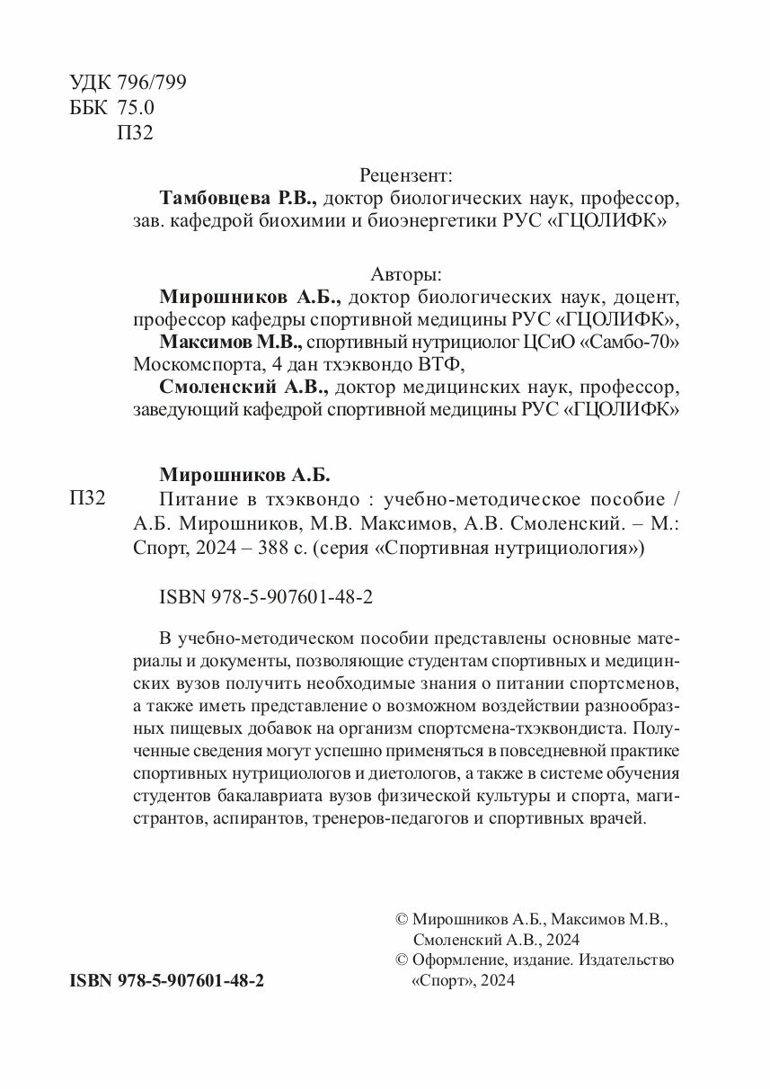 Книга: Питание в тхэквондо (Смоленский Андрей Вадимович, Максимов Михаил Викторович, Мирошников Александр Борисович); Спорт, 2024
