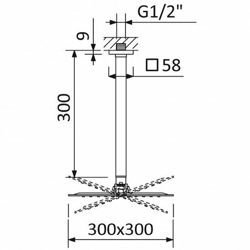 - Размер верхнего душа (ШхД): 300х300 мм.