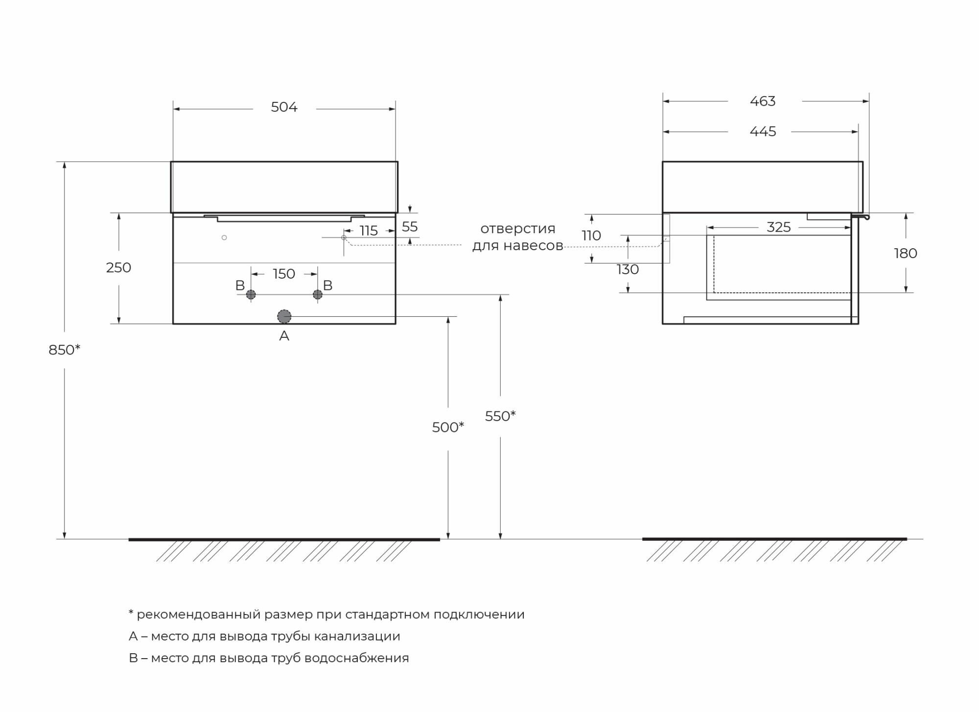 - Габариты корпуса тумбы (ШхВхГ): 500х250х445 мм.