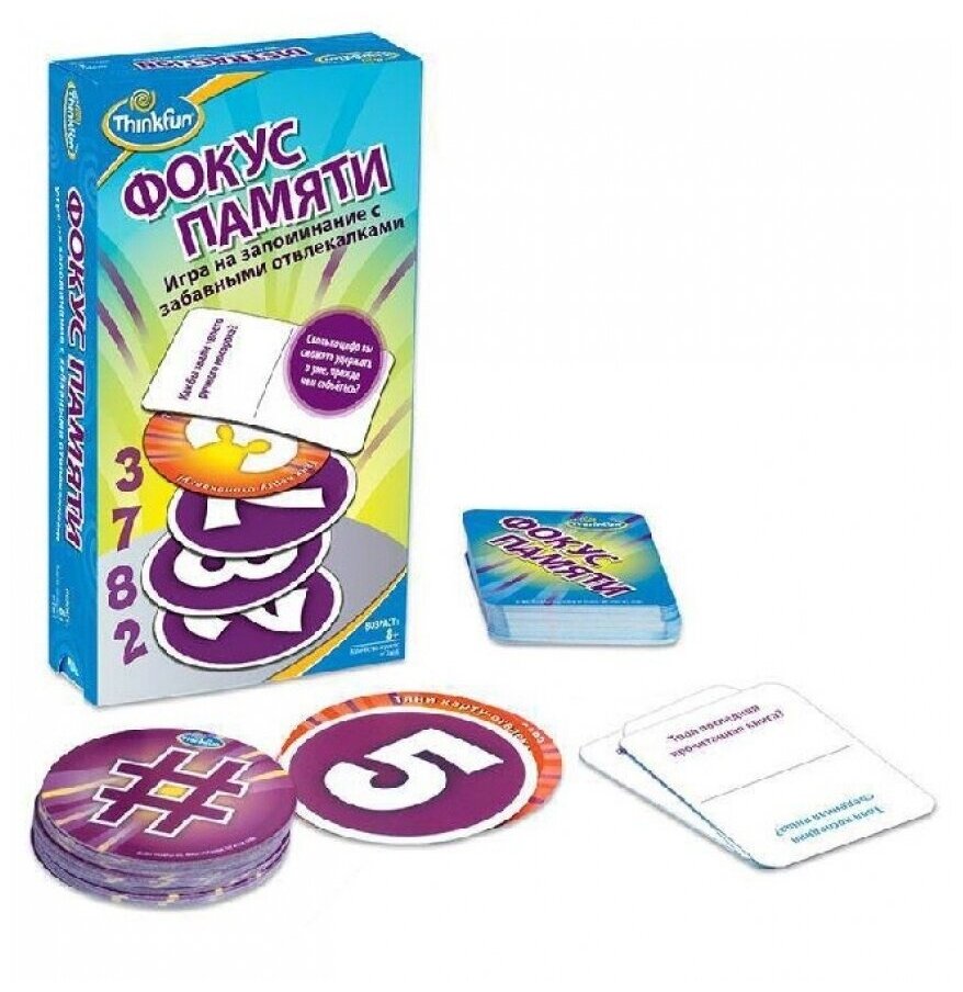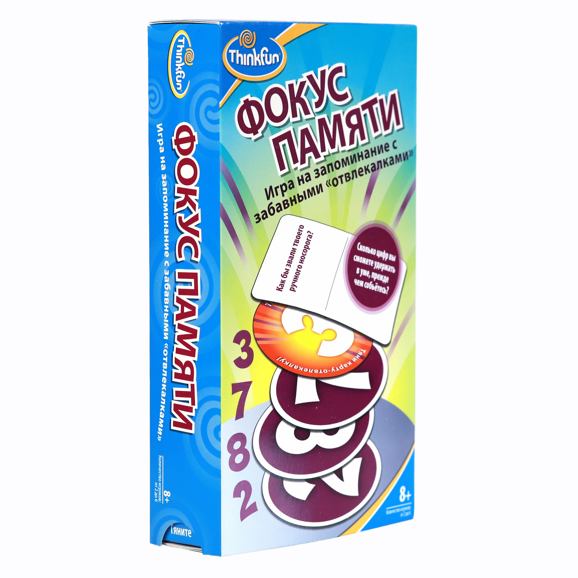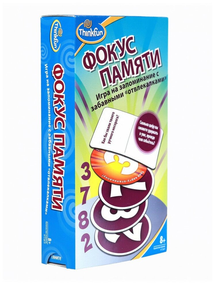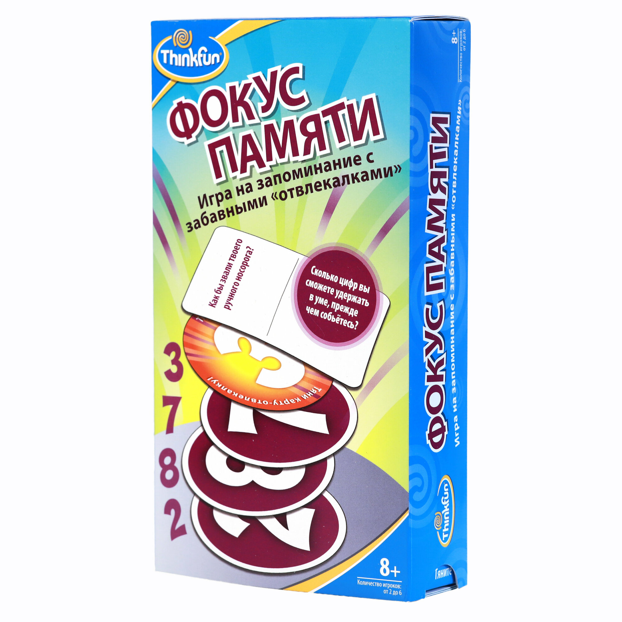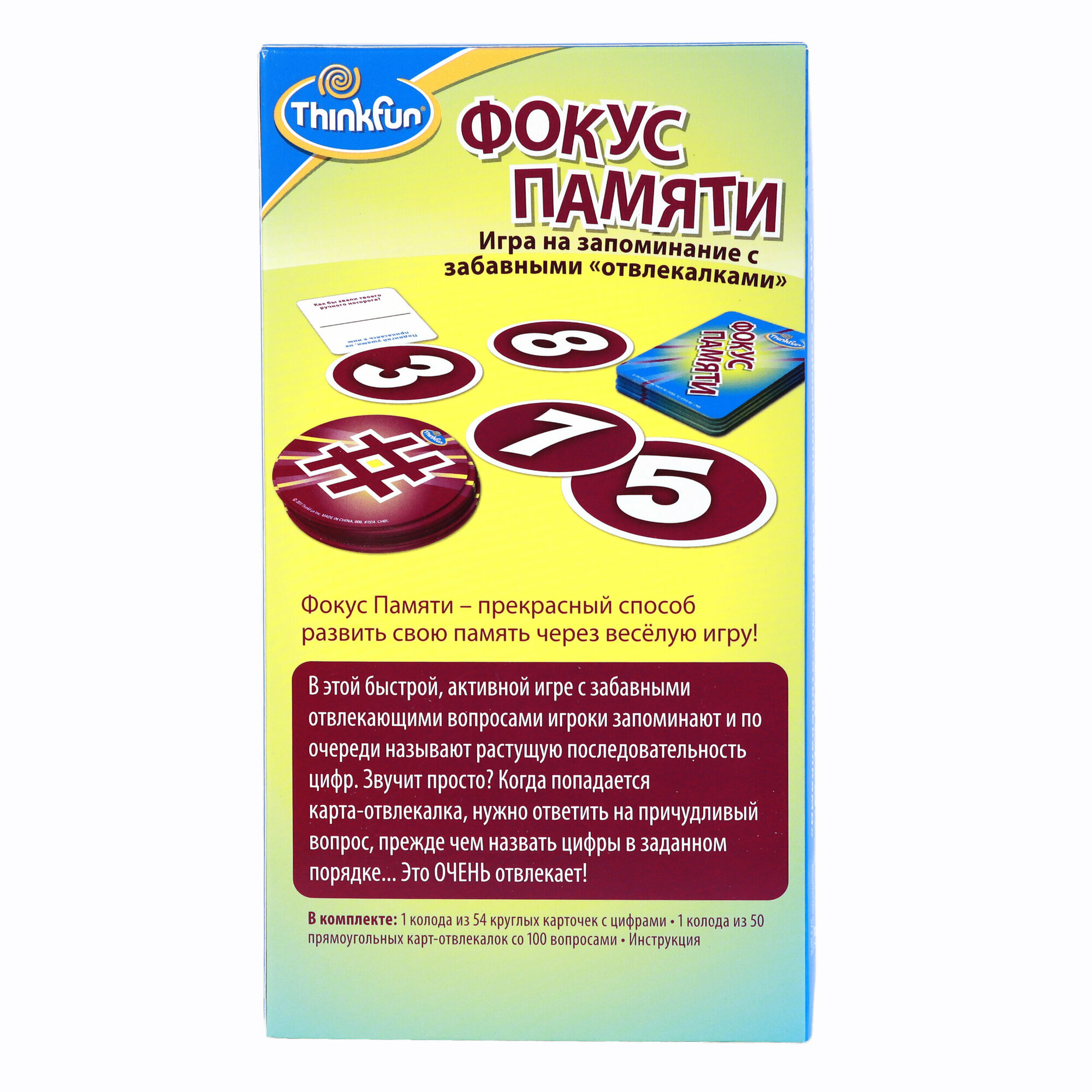 ThinkFun Игра-головоломка Фокус памяти - оригинальный способ скоротать вечер в кругу своей семьи и друзей. Думаете запомнить последовательность цифр - это проще простого? Как бы не так! Мешать сфокусироваться на главном участникам будет особенная карта-отвлекалка, которая будет содержать в себе забавный вопрос, ответ на который обязательно нужно дать прежде, чем назвать заданную цифровую последовательность! Скорее бросьте вызов своей внимательности и памяти!