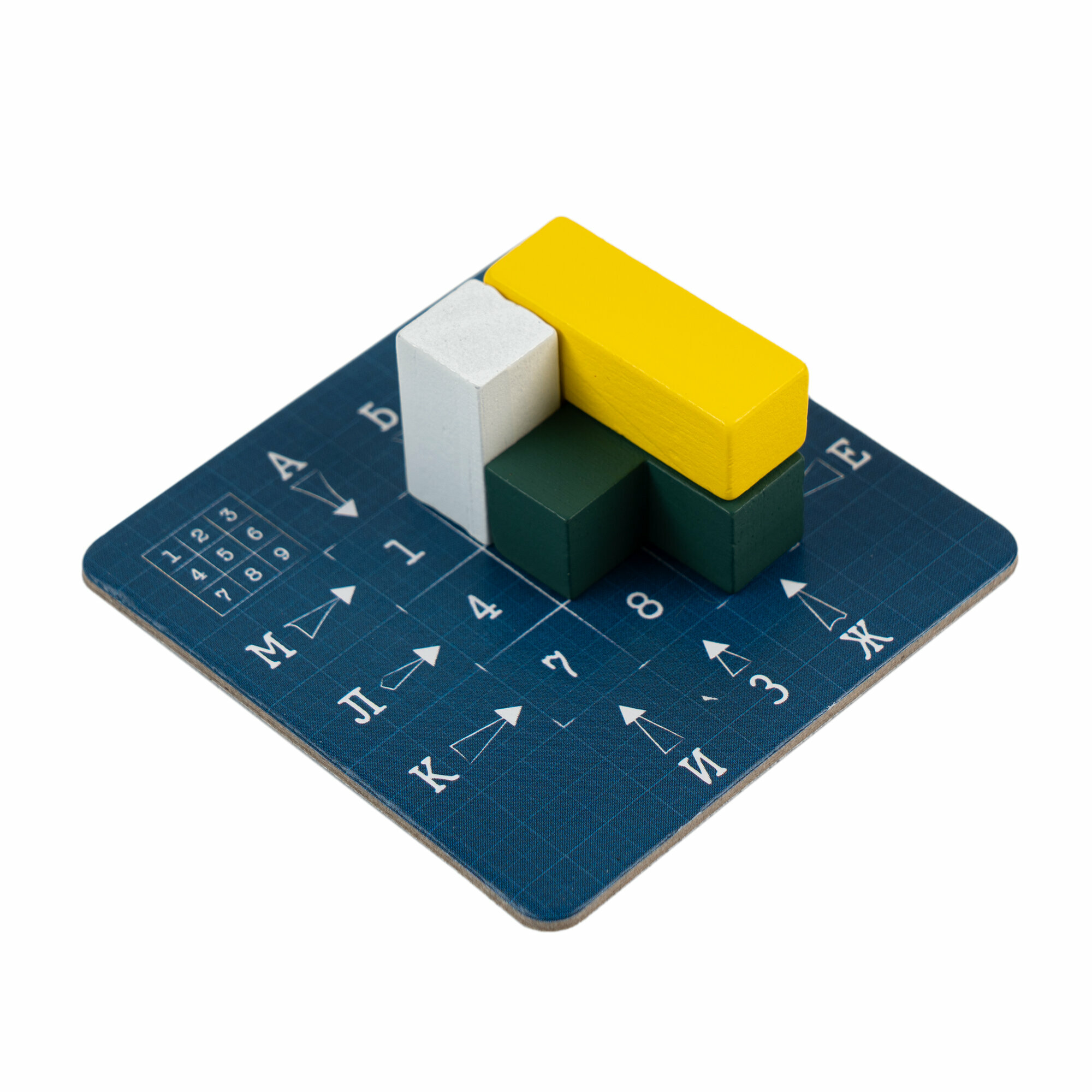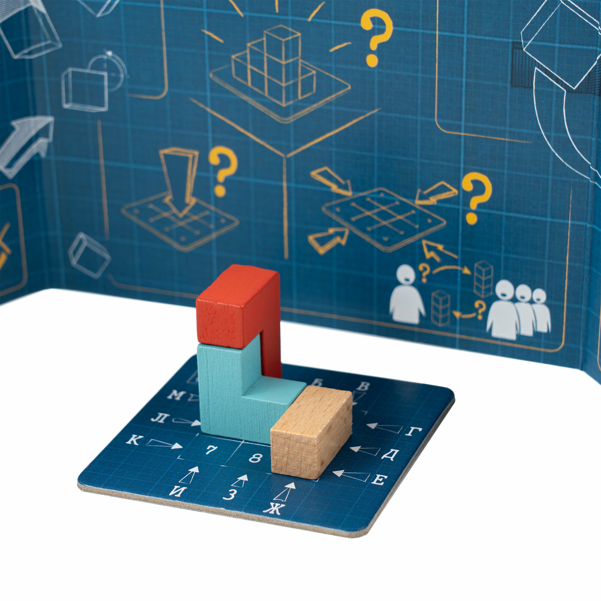 это азартная соревновательная головоломка, которая проверит на прочность не только ваши дедуктивные способности, но и пространственное мышление! В ходе этой быстрой настольной игры вам предстоит создать любую фигуру из разноцветных блоков за личной ширмой, а затем с помощью наводящих вопросов быстрее всех отгадать, какие же фигуры построили ваши соперники. В свой ход вы сможете задать один из трех вопросов, позволяющий вам узнать, какого же цвета фигура в определенной ячейке или сколько же она блоков в высоту, но вопросы стоит подбирать с умом, ведь порой вам тоже придется отвечать на свой собственный вопрос, раскрывая драгоценную информацию оппонентам! Победителем станет тот, кто первым успешно соберет фигуру соперника на основе полученных данных и "взломает" вражеский куб. Задавайте вопросы, анализируйте ответы, скрипите мозгами, шевелите серым веществом и станьте победителем в этом пространственно-логическом сражении! :)