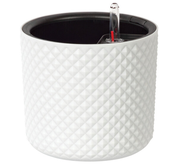 Кашпо фасет состоит из основного горшка, вставки, а также из автополива. Благодаря вставке отсутствует необходимость в поддоне. Она отводит лишнюю влагу и создаёт дополнительный объём у кашпо.Как это работает? Следует полить растение. Лишняя влага стечёт в кашпо. Индикатор уровня воды поднимется, говоря о том, что в кашпо достаточно воды. По мере испарения воды, он опустится на дно и достоверно покажет когда следует произвести полив.Система автополива позволяет поддерживать почву максимально увлажнённой (не переливать и не пересушивать)Кашпо представлено в двух цветах: белый и графитовый.