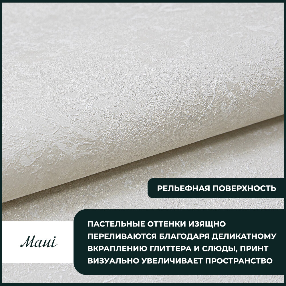 **Обои флизелиновые Anturage Maui** подходят для оклейки стен в сухих и помещениях с умеренным уровнем влажности: в залах, гостиных, столовых, детских комнатах и спальнях. Этот материал отличается легкостью монтажа, потому что для его фиксации достаточно смазывать клеем только поверхность стены. Благодаря высокой плотности и прочности флизелина обои не рвутся даже при усадке стен. Материал обладает устойчивостью к истиранию, при необходимости его можно окрашивать акриловыми или водно-дисперсионными красками.