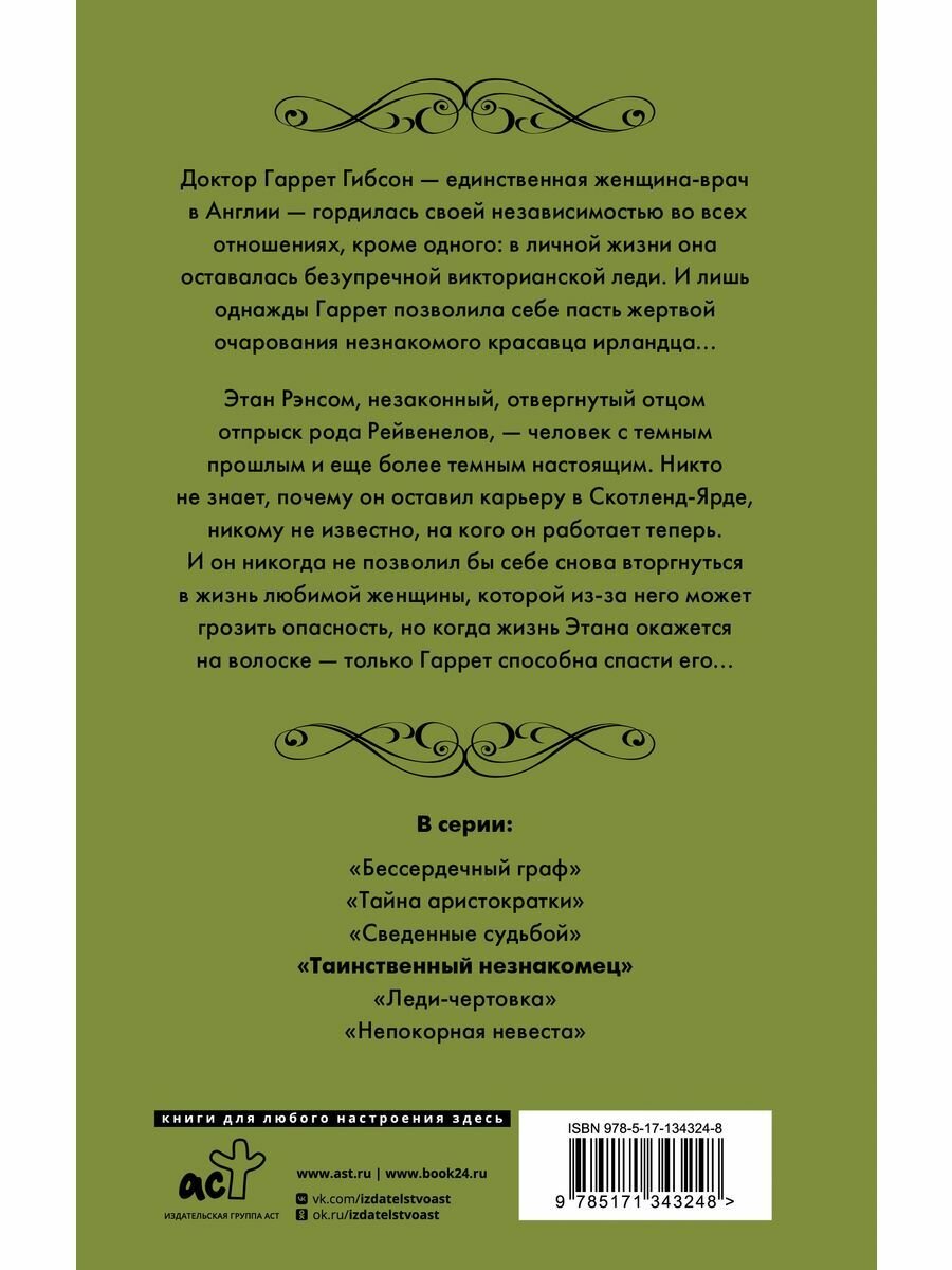 Доктор Гаррет Гибсон - единственная женщина-врач в Англии - гордилась своей независимостью во всех отношениях, кроме одного: в личной жизни она оставалась безупречной викторианской леди. И лишь однажды Гаррет позволила себе пасть жертвой очарования незнакомого красавца ирландца. Этан Рэнсом незаконный, отвергнутый отцом отпрыск рода Рейвенелов, - человек с темным прошлым и еще более темным настоящим. Никто не знает, почему он оставил карьеру в Скотленд-Ярде, никому не известно, на кого он работает теперь. И он никогда не позволил бы себе снова вторгнуться в жизнь любимой женщины, которой из-за него может грозить опасность, но когда жизнь Этана окажется на волоске - только Гаррет способна спасти его.