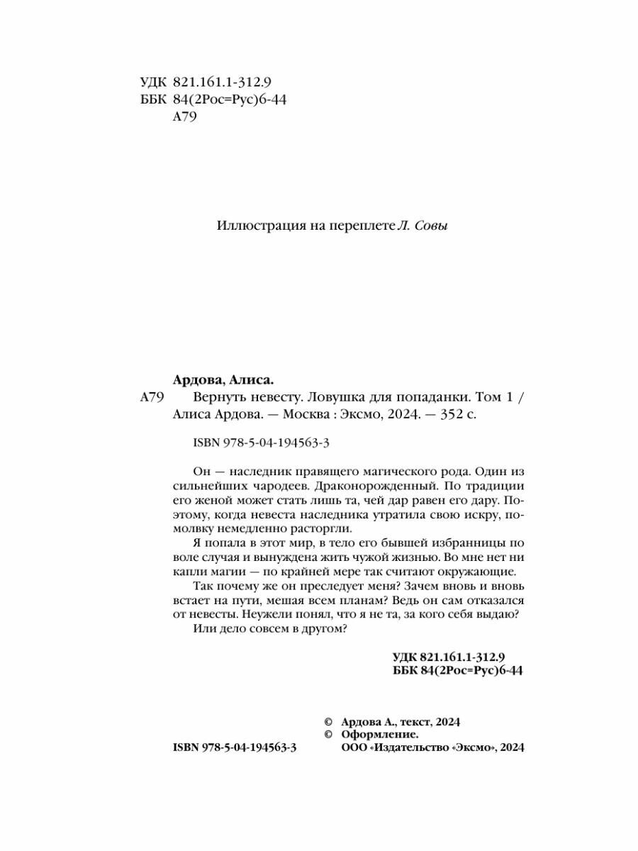 Вернуть невесту. Ловушка для попаданки. Том 1 (Алиса Ардова); Эксмо, Редакция 1, 2024