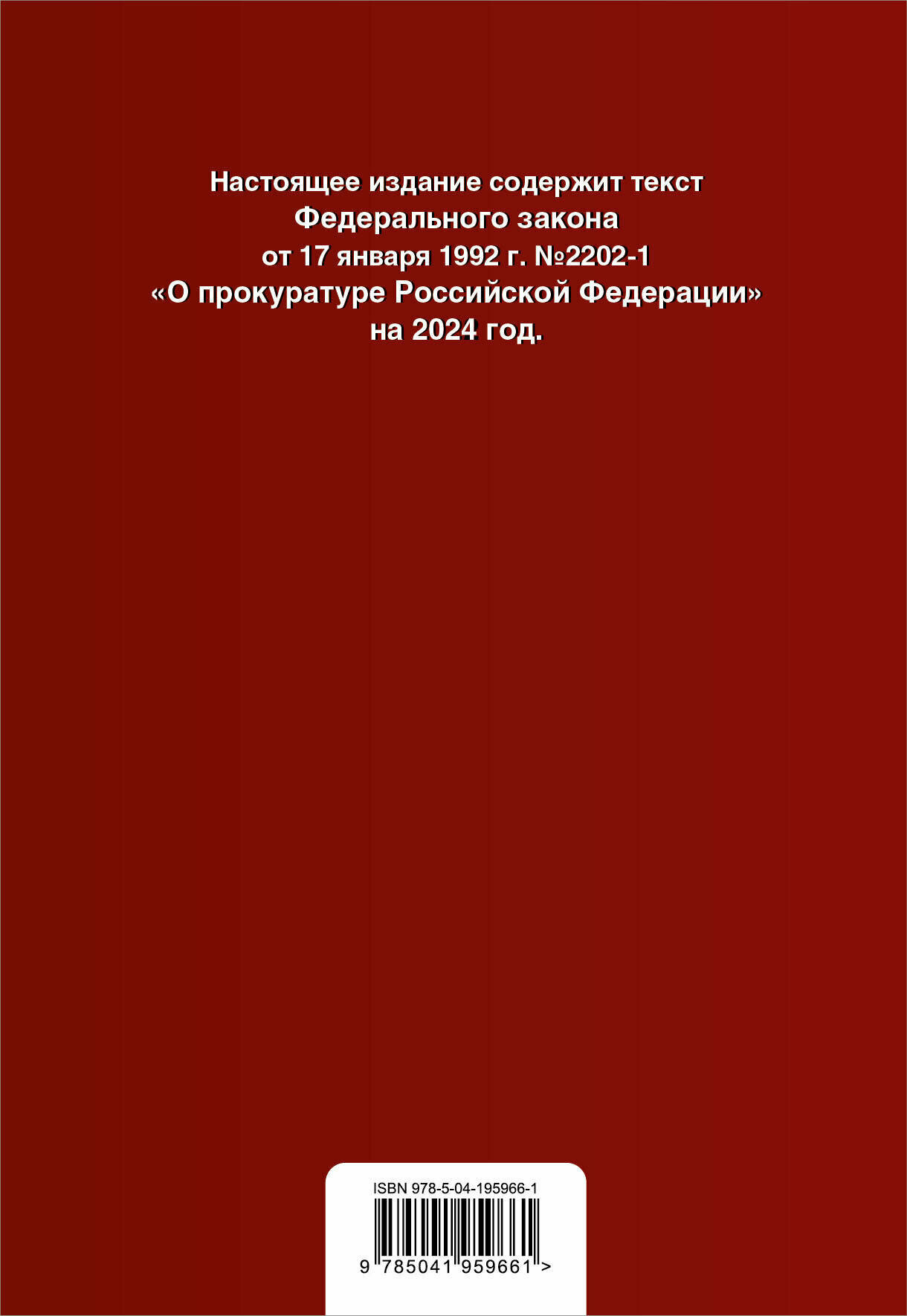 Настоящее издание содержит текст Федерального закона от 17 января 1992 года № 2202-1 «О прокуратуре Российской Федерации» с изменениями и дополнениями на 2024 год. К изменениям, вступающим в силу позднее, вместе с редакцией нормы, действующей на эту дату, приводится норма в новой редакции и указывается дата, с которой она вступает в силу.В данной книге содержится вся актуальная информация на дату подписания издания в печать.