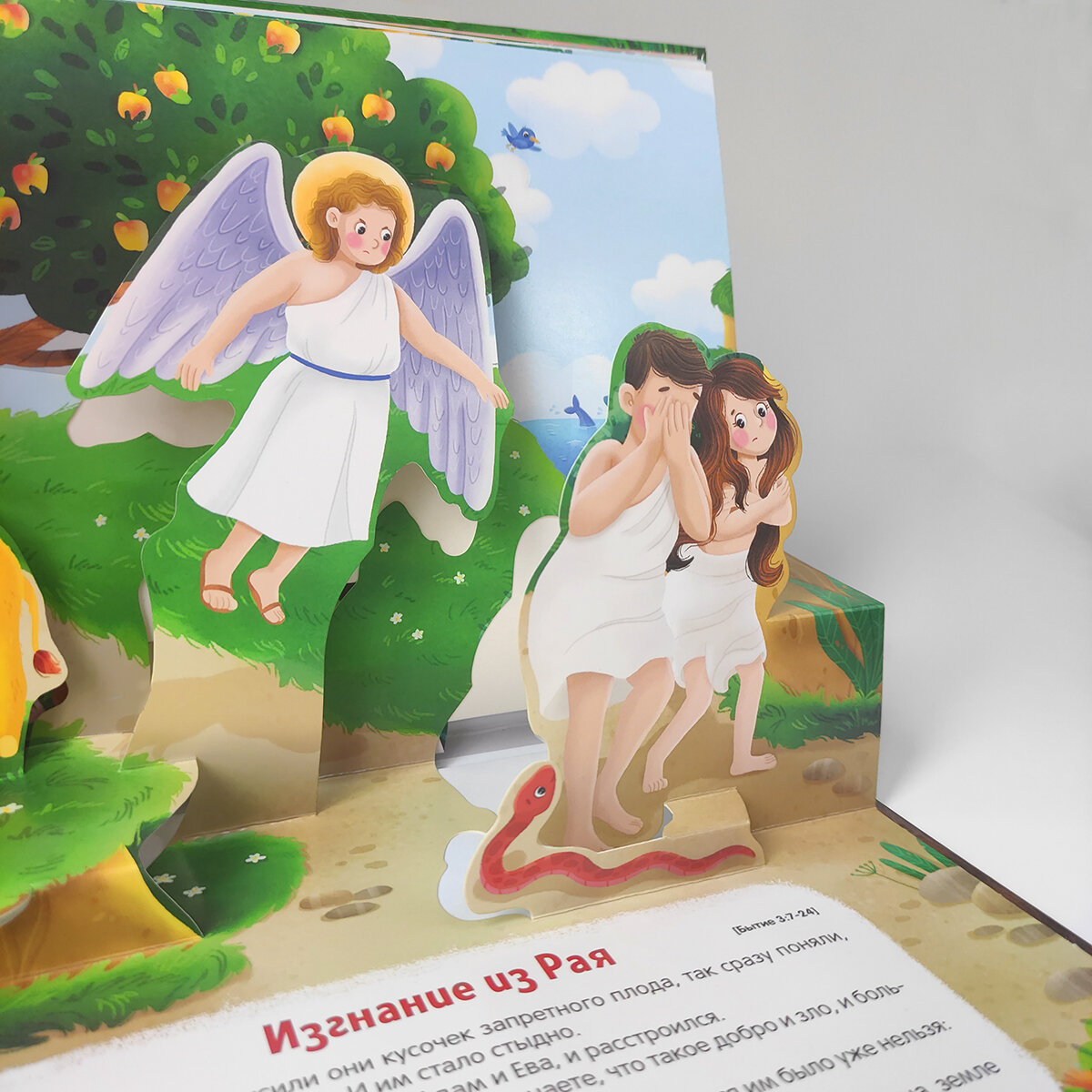 Книжка-панорамка «Сотворение мира» из серии «Библейские истории» в доступной форме познакомит ребёнка с одним из важнейших и известнейших библейских сюжетов о создании мира и первых людей — Адама и Евы. Внутри 12 страниц с красочными иллюстрациями и объёмными POP-UP картинками, которые помогут малышу лучше понять события и смысл истории. Книга отлично подойдёт для семейного чтения и обсуждения. Русский язык текста прост и понятен. Книга подарок для малышей. Библия прекрасно иллюстрирована объемными иллюстрациями и станет хорошим подарком для ребенка любого возраста . Данная книжка помогает детям погрузиться в мир евангелия. Она охватывает все важные события, а также известные истории. С помощью этой книги, дети смогут прочитать тексты на синодальном переводе и открыть для себя историю новогодних и рождественских праздников. Издательство заботливо создало эту книгу с горячей любовью к детям.