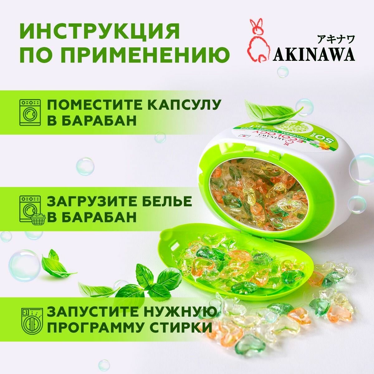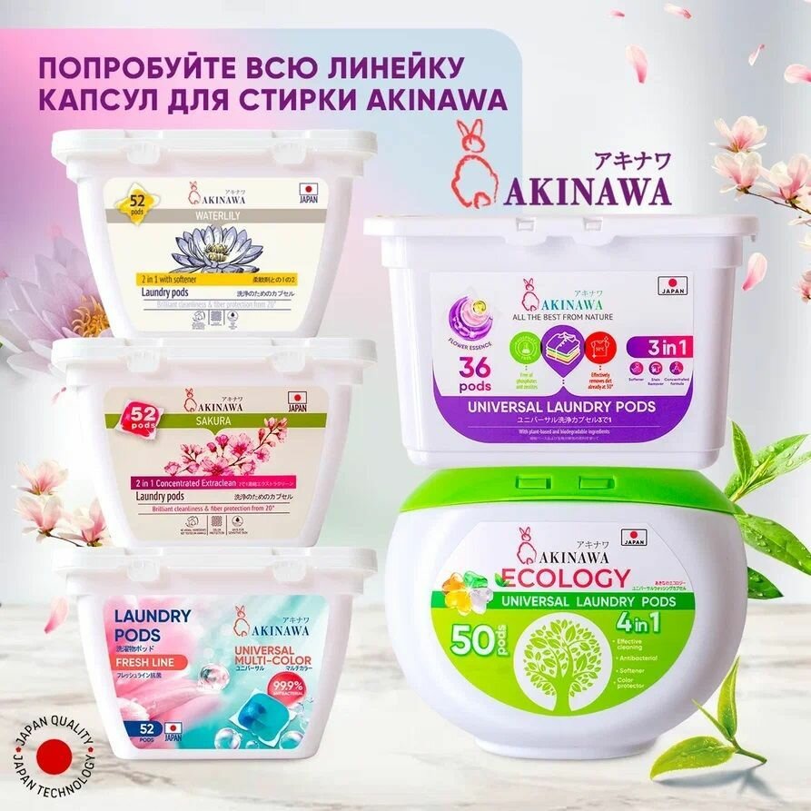 Капсулы для стирки Akinawa Ecology 4в1 50 шт