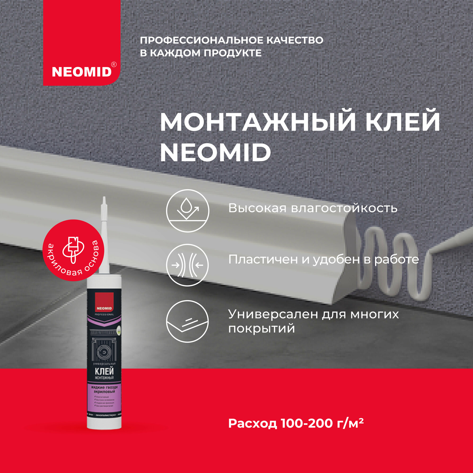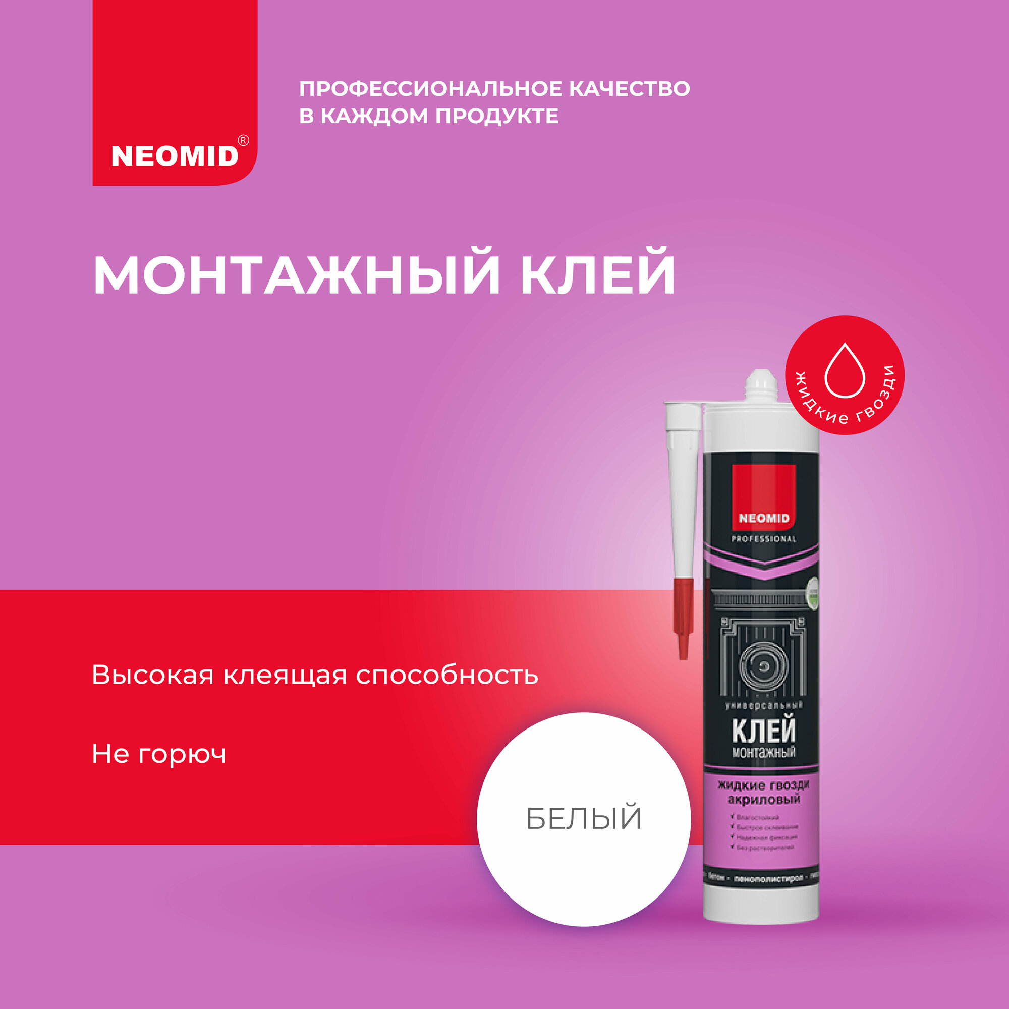 Клей монтажный акриловый Neomid Жидкие гвозди белый 310 мл Неомид