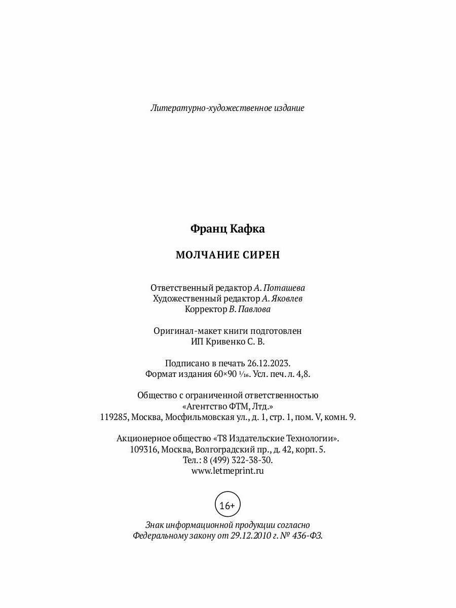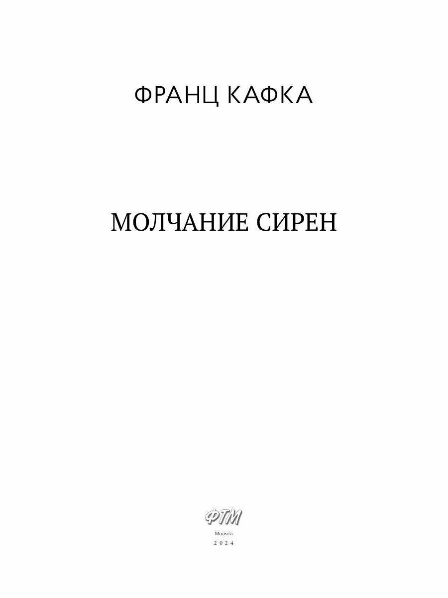 Книга: Молчание сирен (Кафка Франц); Литературное агентство ФТМ, 2024