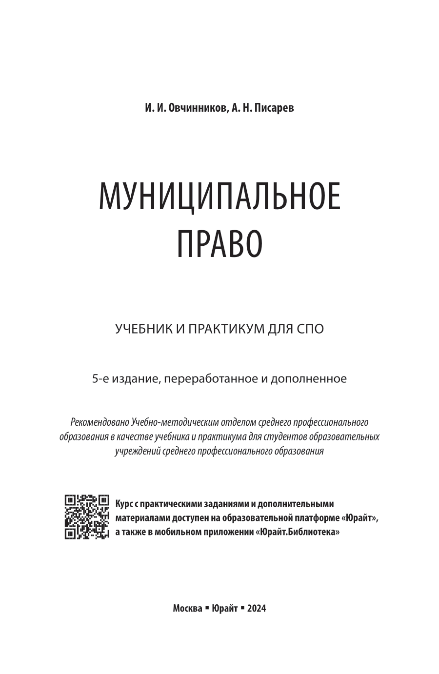 Муниципальное право 5-е изд. пер. и доп. Учебник и практикум для СПО (Александр Николаевич Писарев); ЮРАЙТ, 2024
