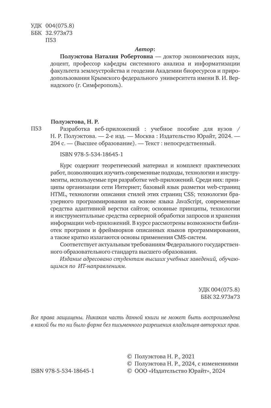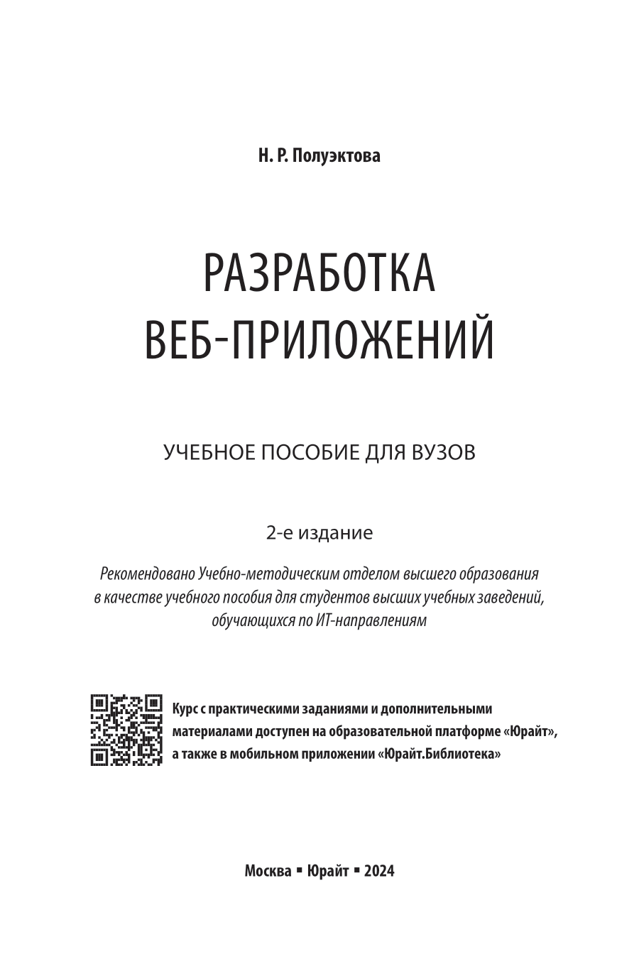 Разработка веб-приложений 2-е изд. Учебное пособие для вузов (Наталия Робертовна Полуэктова); ЮРАЙТ, 2024