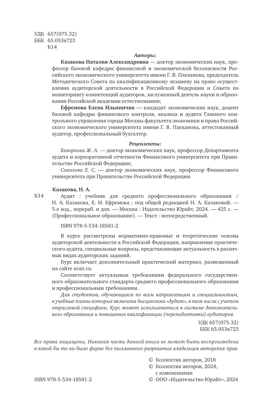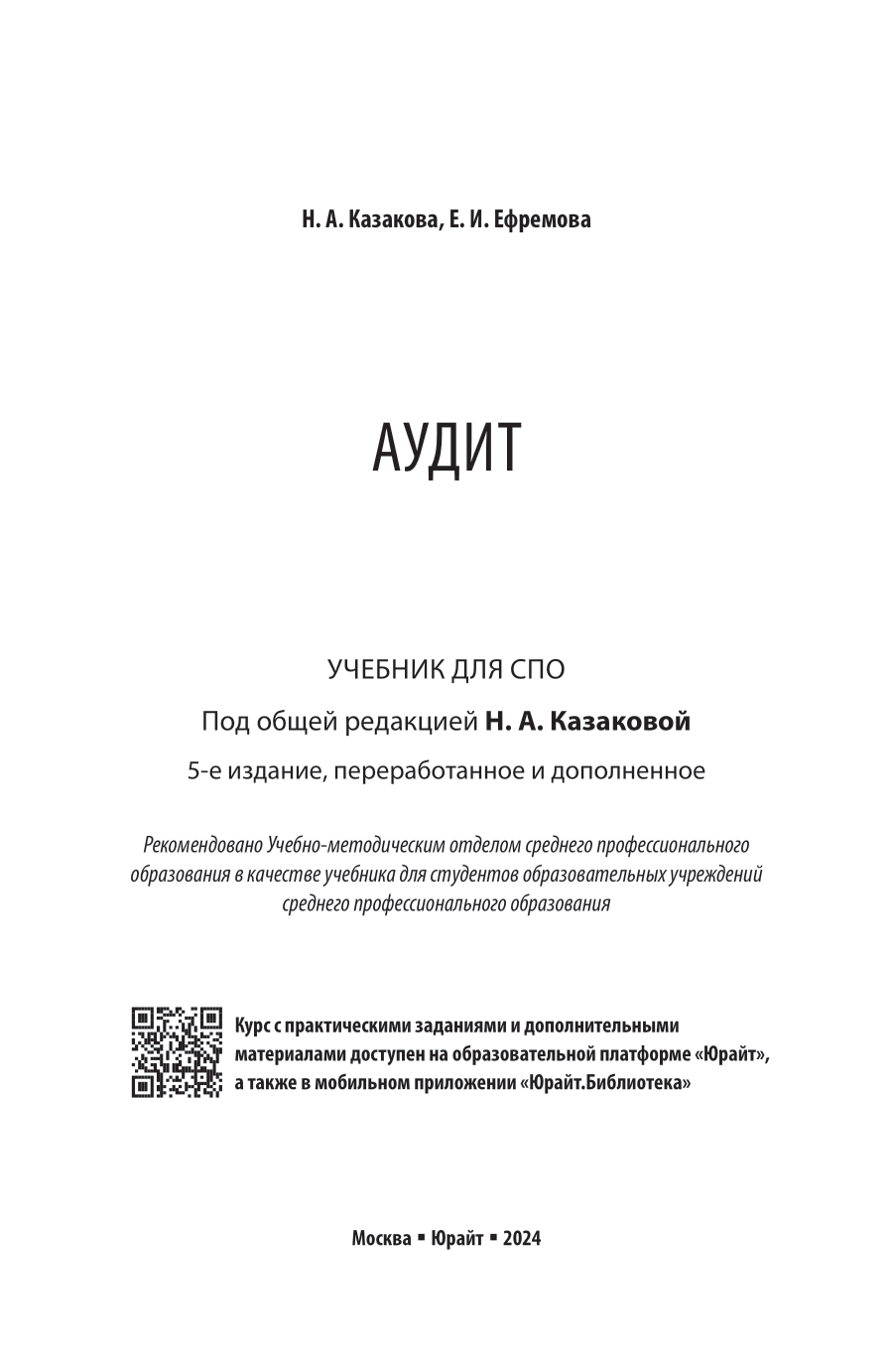 Аудит 5-е изд. пер. и доп. Учебник для СПО (Наталия Александровна Казакова); ЮРАЙТ, 2024