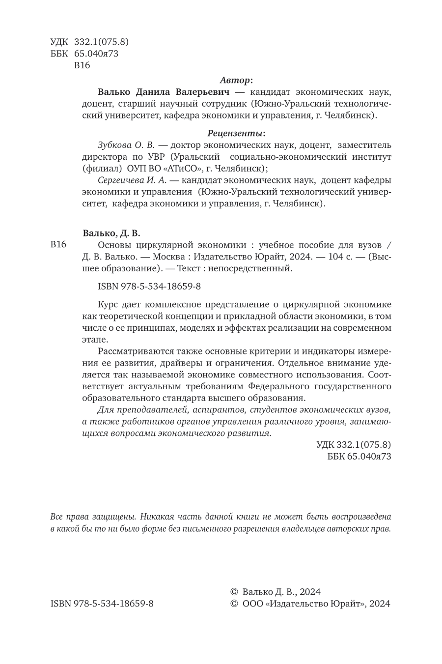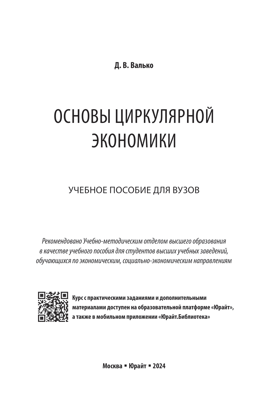 Основы циркулярной экономики. Учебное пособие для вузов (Данила Валерьевич Валько); ЮРАЙТ, 2024