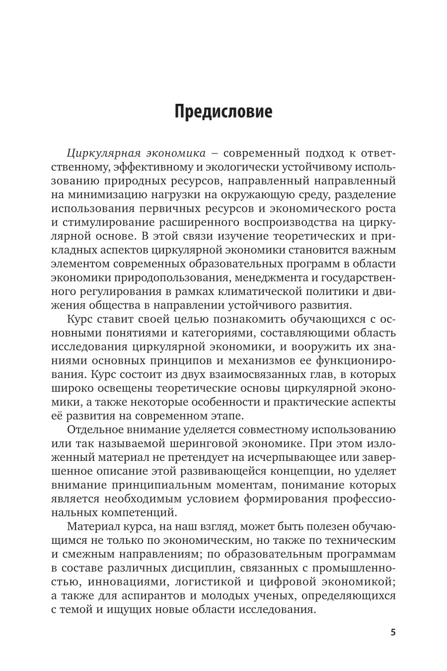 Курс дает комплексное представление об циркулярной экономике как теоретической концепции и прикладной области экономики, в том числе о ее принципах, моделях и эффектах реализации на современном этапе. Рассматриваются также основные критерии и индикаторы измерения ее развития, драйверы и ограничения. Отдельное внимание уделяется так называемой экономике совместного использования. Соответствует актуальным требованиям Федерального государственного образовательного стандарта высшего образования. Для преподавателей, аспирантов, студентов экономических вузов, а также работников органов управления различного уровня, занимающихся вопросами экономического развития.