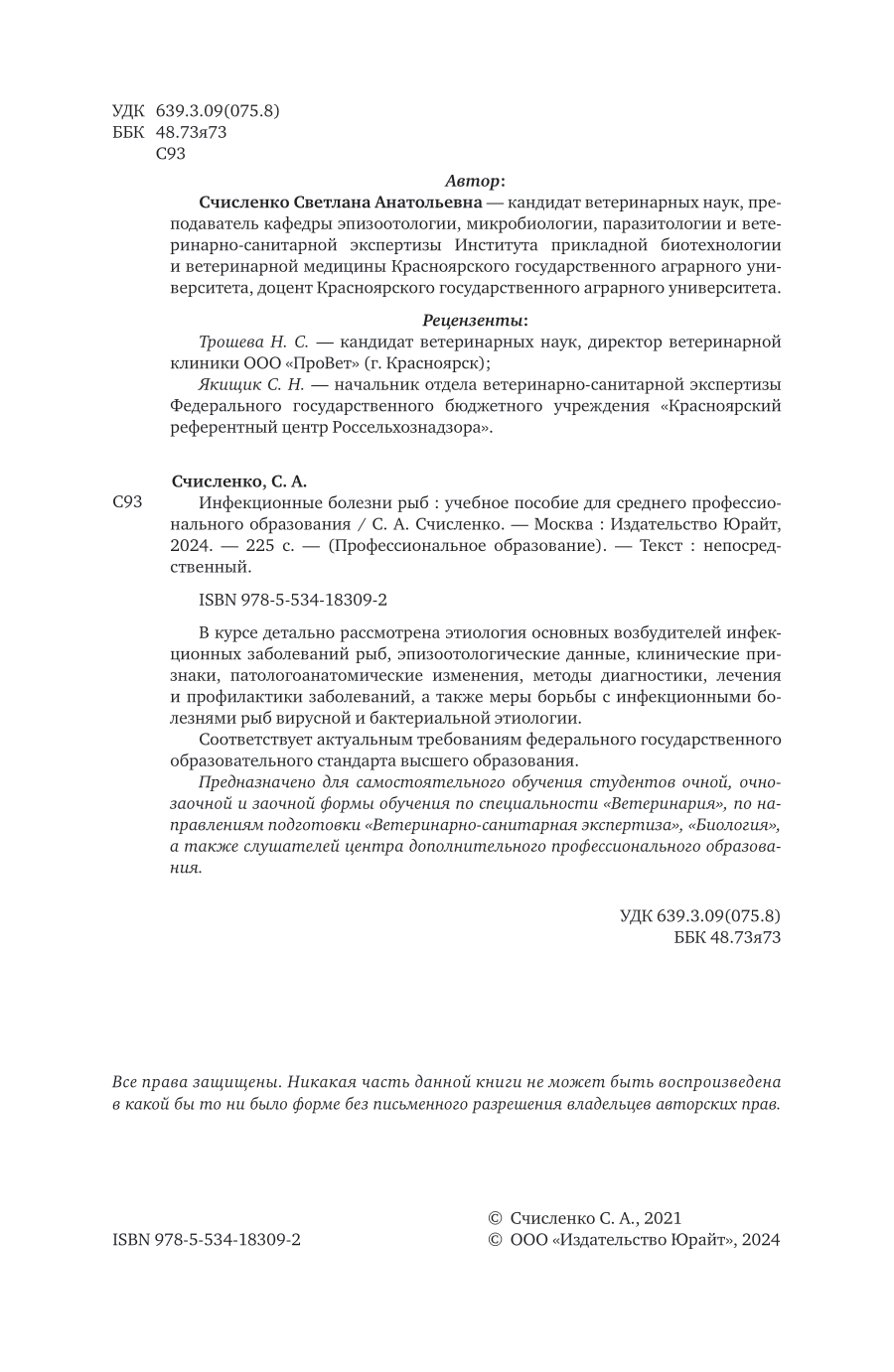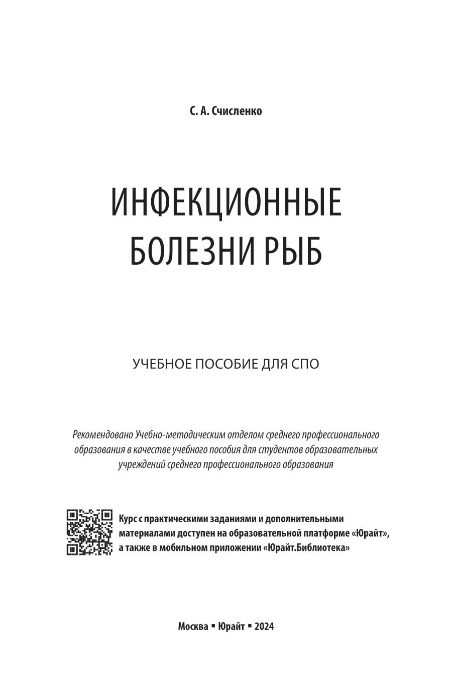 Инфекционные болезни рыб. Учебное пособие для СПО (Светлана Анатольевна Счисленко); ЮРАЙТ, 2024