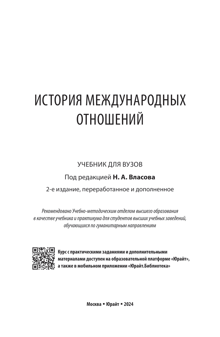 История международных отношений 2-е изд. пер. и доп. Учебник для вузов (Власов Николай Анатольевич; Бодров Андрей Владимирович; Ниязов Ниязи Сабир оглы; Худолей Константин Константинович; Хейфец Виктор Лазаревич), 2024