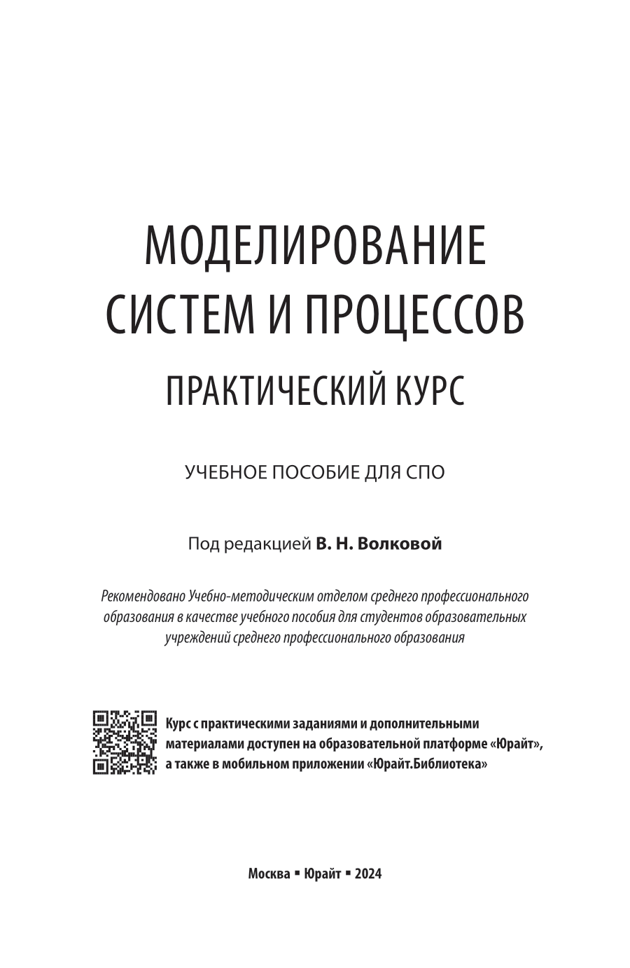 Данный практический курс является дополнением к учебнику «Моделирование систем и процессов» под редакцией В. Н. Волковой и В. Н. Козлова (М.: Юрайт, 2016). Цель практического курса - помочь студентам в получении умений и навыков применения методов моделирования систем различных классов. В практический курс включены методические материалы по выполнению приводимых лабораторных работ и практических заданий, в которых применяются методы моделирования систем, и описание средств их реализации: автоматизированных диалоговых процедур, математических пакетов, аналитических систем, в частности аналитической платформы Deductor, программных средств для построения и исследования когнитивных моделей и др. Приводятся информационные технологии работы с автоматизированными процедурами и аналитическими системами. Для выполнения лабораторных работ студенты применяют готовые программные процедуры или разрабатывают собственные. Примеры процедур доступны на образовательной платформе Юрайт (), куда студенты могут получить доступ в результате приобретения этой книги.