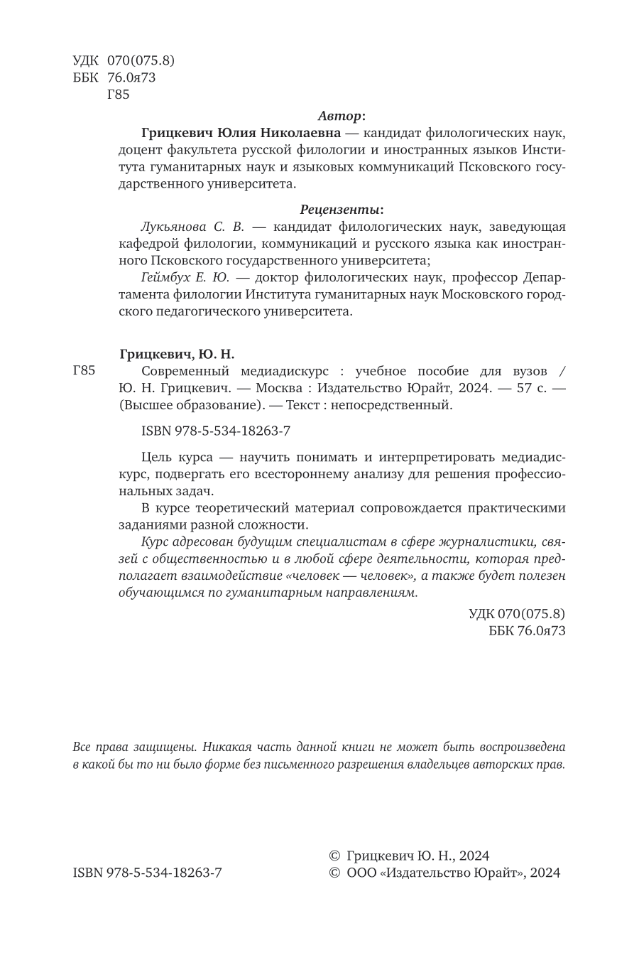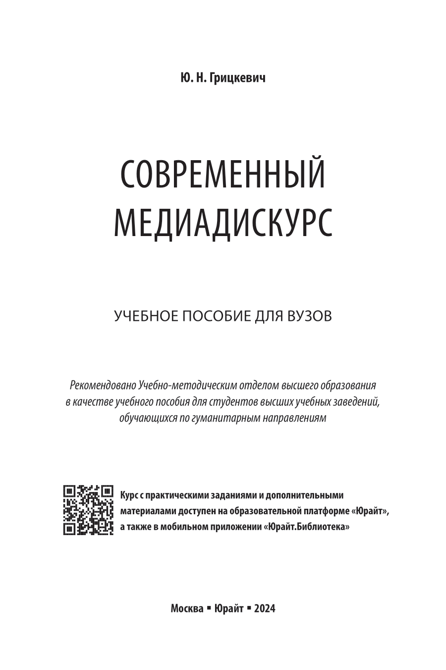 Современный медиадискурс. Учебное пособие для вузов (Юлия Николаевна Грицкевич); ЮРАЙТ, 2024