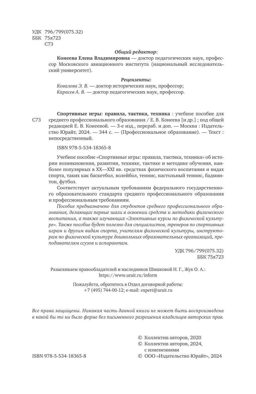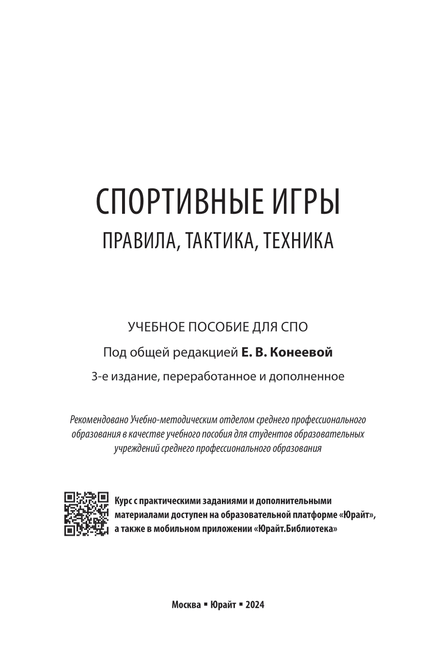 Спортивные игры: правила тактика техника 3-е изд. пер. и доп. Учебное пособие для СПО (Елена Владимировна Конеева); ЮРАЙТ, 2024