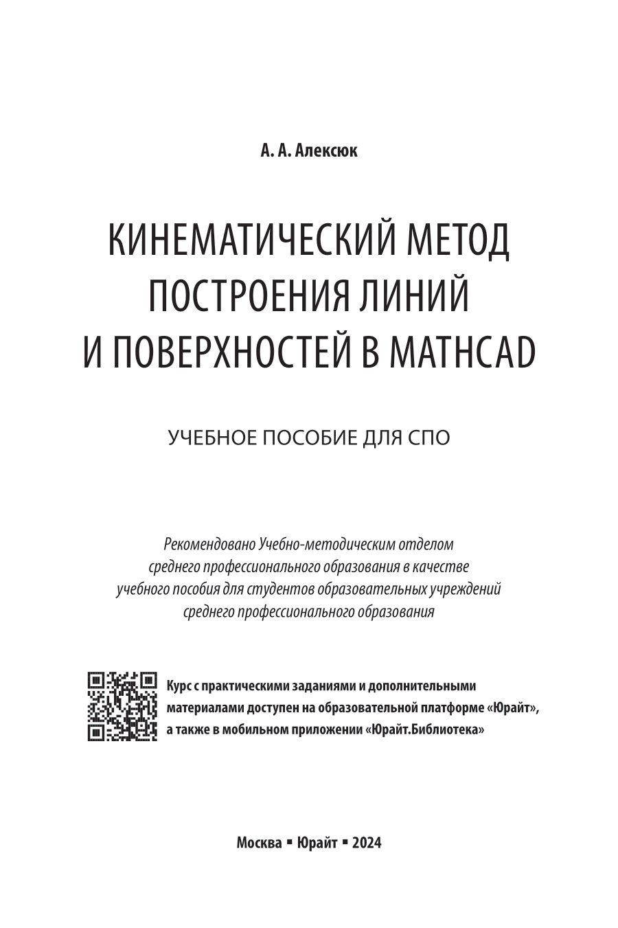 Кинематический метод построения линий и поверхностей в Mathcad. Учебное пособие для СПО (Александр Анатольевич Алексюк); ЮРАЙТ, 2024