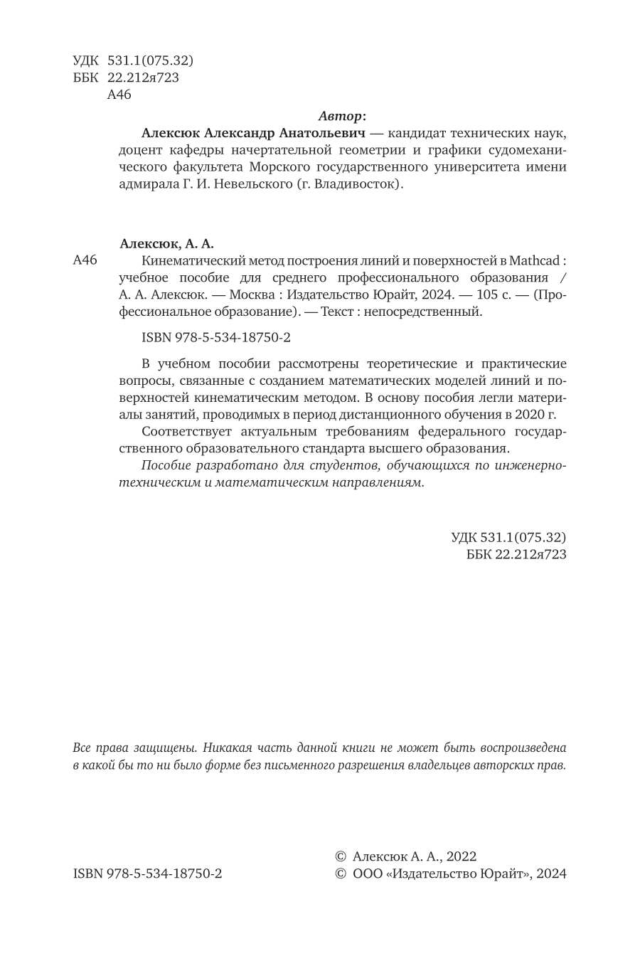 Сервис сравнения цен СкидкаГИД предлагает сравнить цены на товар «Книга: Кинематический метод построения линий и поверхностей в Mathcad. Учебное пособие для СПО (Александр Анатольевич Алексюк); ЮРАЙТ, 2024»