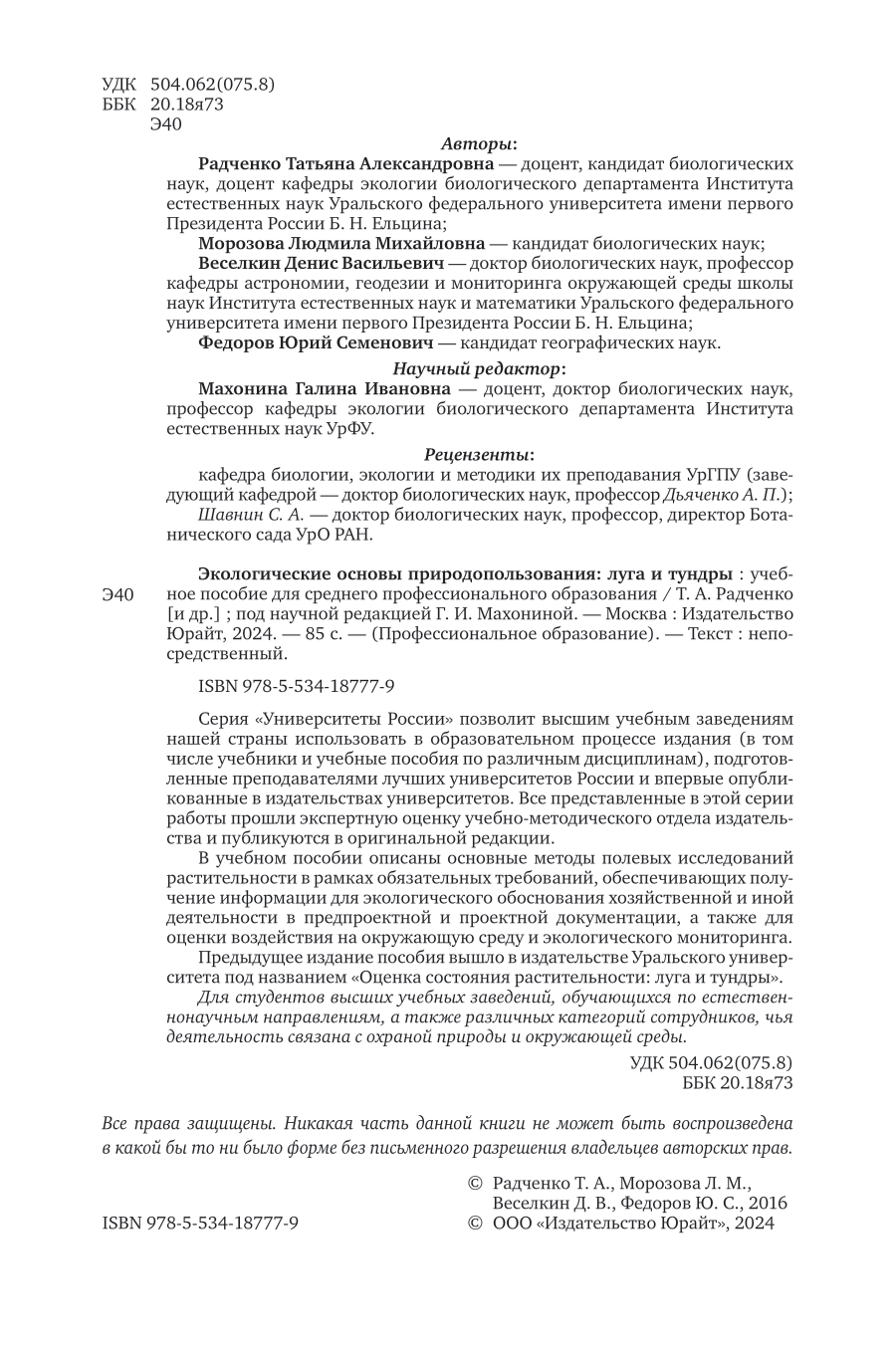 Экологические основы природопользования: луга и тундры. Учебное пособие для СПО (Людмила Михайловна Морозова); ЮРАЙТ, 2024