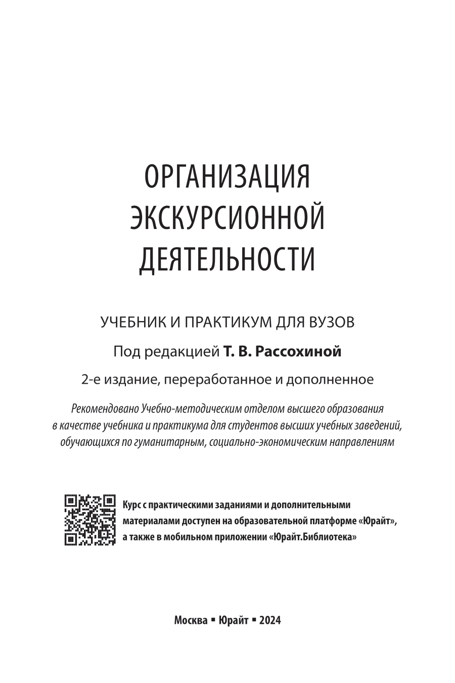 Организация экскурсионной деятельности 2-е изд. пер. и доп. Учебник и практикум для вузов (Жанна Вячеславовна Жираткова); ЮРАЙТ, 2024