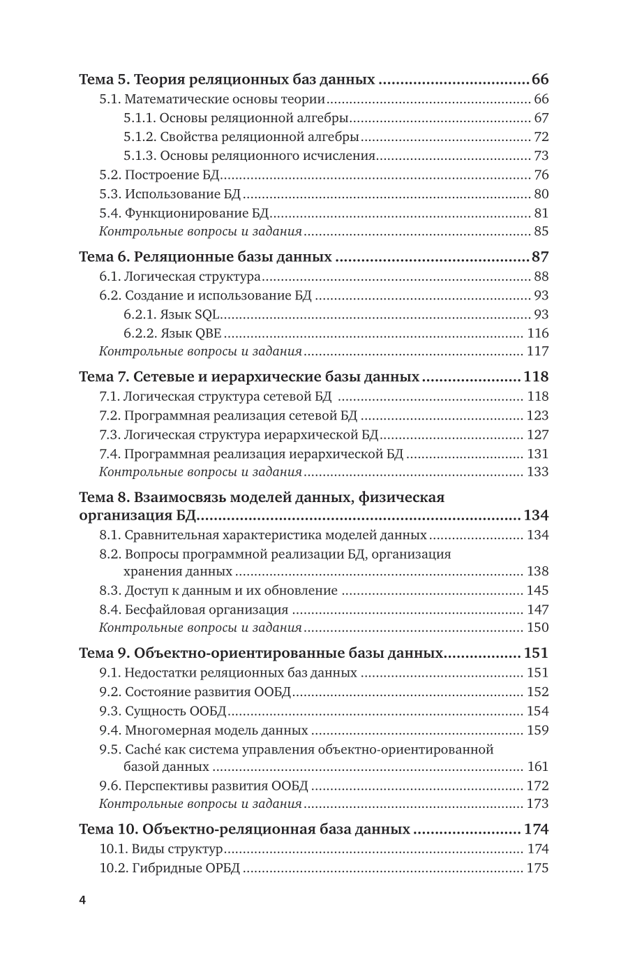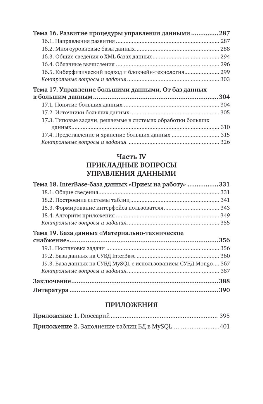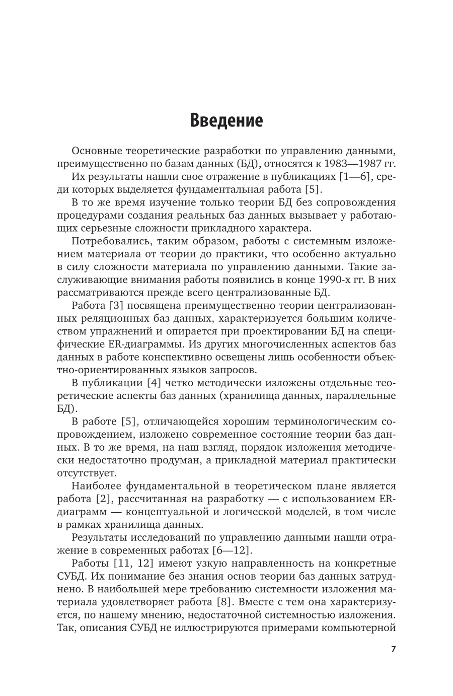 В работе излагаются вопросы построения и использования технологии баз данных в процессах хранения, передачи данных, выработки и принятия решений. В настоящей работе рассмотрены как устоявшиеся теоретические вопросы, так и новые аспекты, мало или не системно отраженные в отечественной и переводной литературе. Это относится как к локальным, так и к распределенным базам данных, объектно-ориентированным базам данных, хранилищам данных, режиму блокчейн. Подробно рассмотрен режим клиент-сервер, в том числе в удаленном варианте и при облачных вычислениях. Работа отличается системным рассмотрением теоретических вопросов, которые сопровождаются компьютерной реализацией. Это позволяет лучше понять процедуры построения, работы и использования баз данных. Работа рассчитана прежде всего на разработчиков и пользователей баз и хранилищ данных; преподавателей и научных сотрудников, сферой интереса которых является технология хранения и управления данными; менеджеров и руководителей различного ранга; желающих самостоятельно ознакомиться с современным состоянием технологии баз данных.