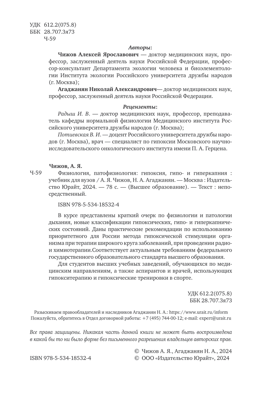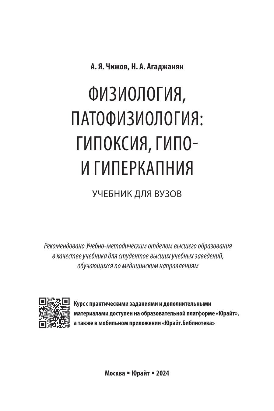 Физиология патофизиология: гипоксия гипо- и гиперкапния. Учебник для вузов (Алексей Ярославович Чижов); ЮРАЙТ, 2024