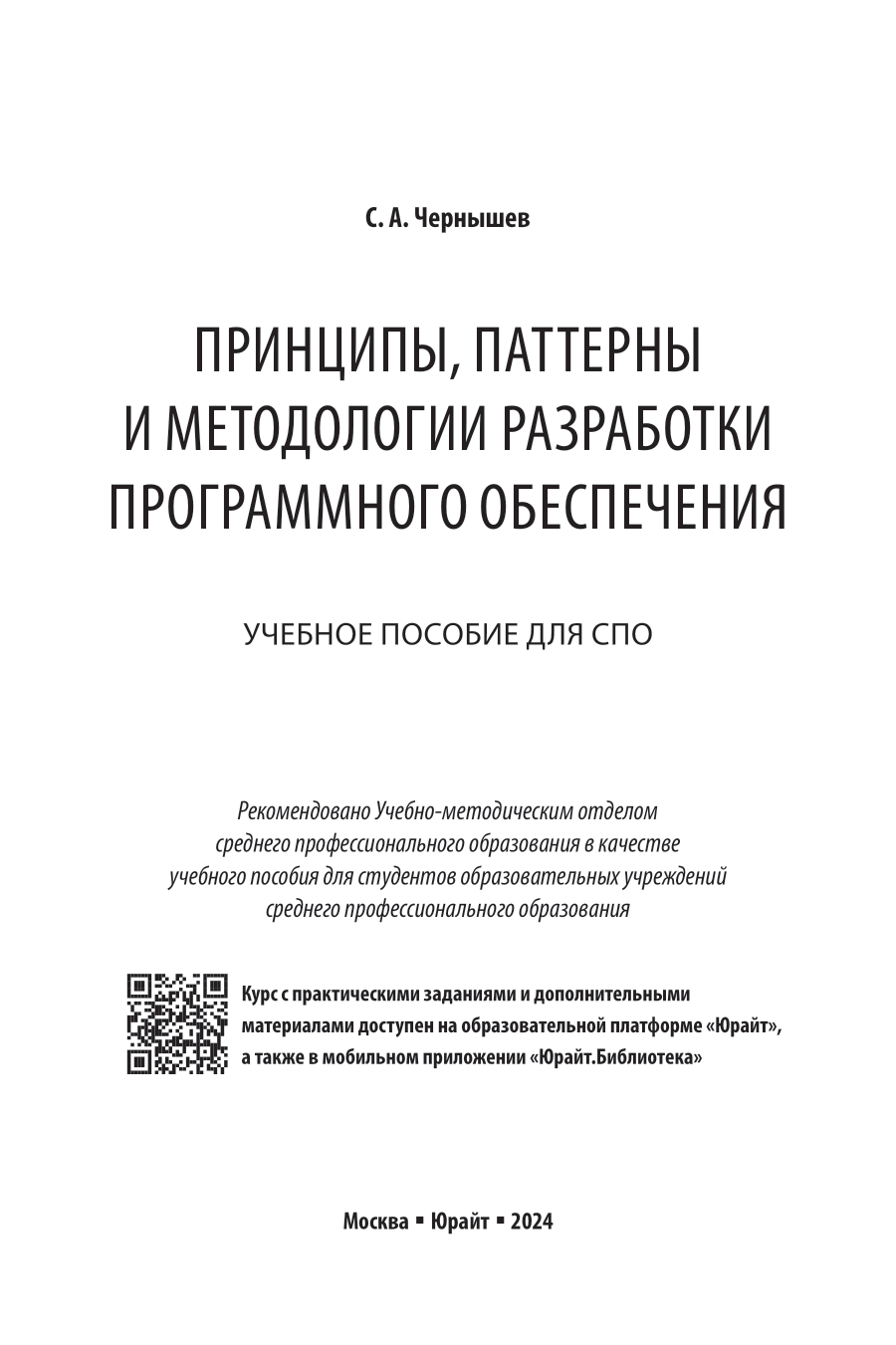 Принципы паттерны и методологии разработки программного обеспечения. Учебное пособие для СПО (Станислав Андреевич Чернышев); ЮРАЙТ, 2024