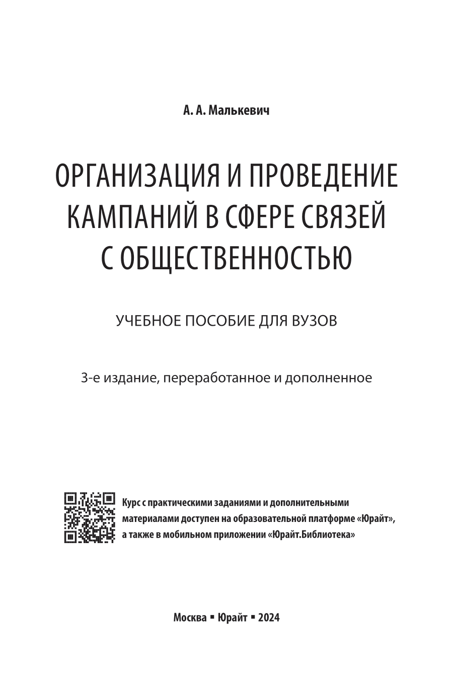 Организация и проведение кампаний в сфере связей с общественностью 3-е изд. пер. и доп. Учебное пособие для вузов (Александр Александрович Малькевич); ЮРАЙТ, 2024