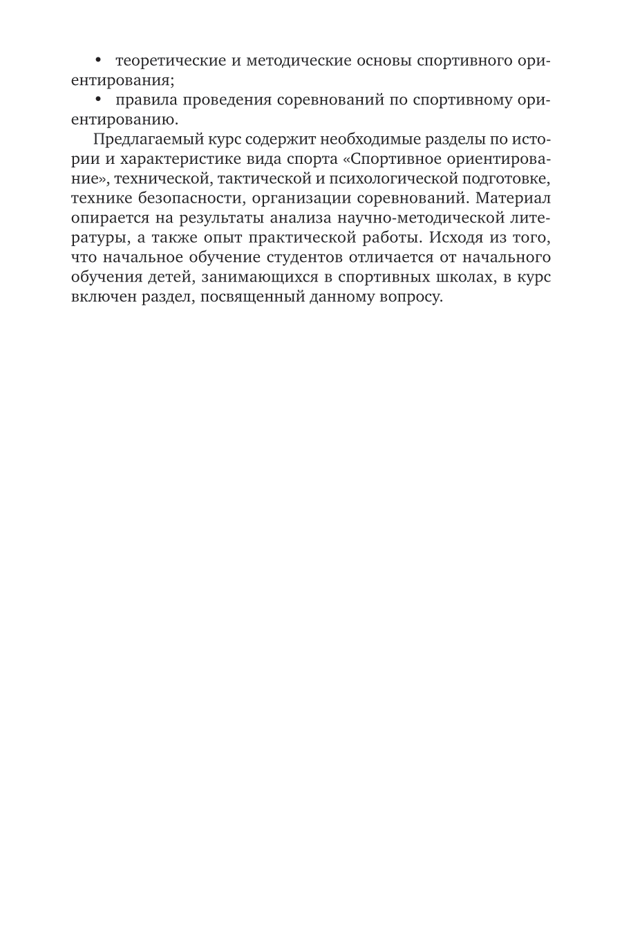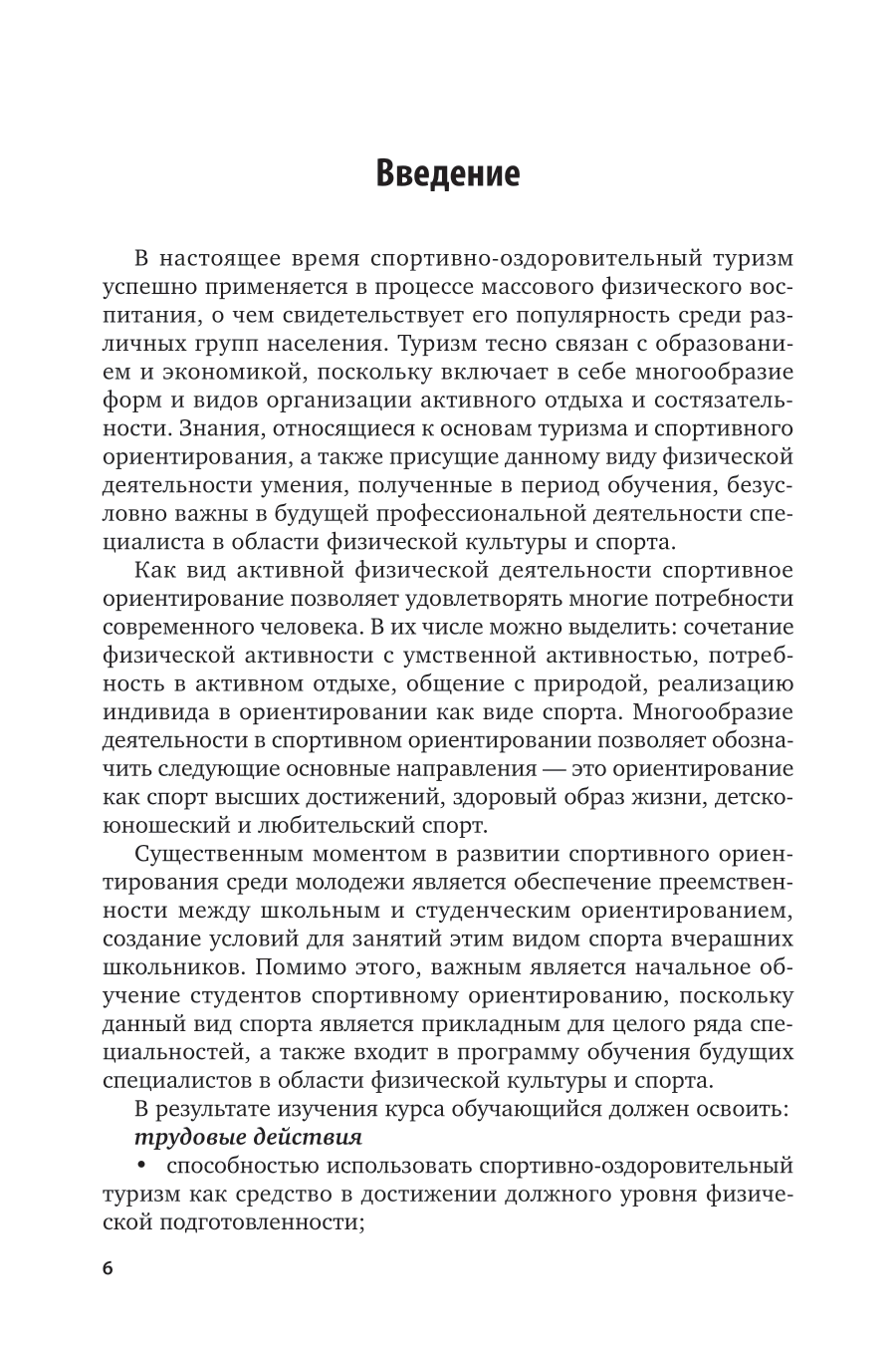 В курсе раскрыты основы обучения спортивно-оздоровительному туризму и спортивному ориентированию. Дана характеристика рассматриваемым видам спортивно-оздоровительной деятельности. Изложены основы организации и проведения соревнований. Представлено описание средств и методов формирования техники туризма и спортивного ориентирования. Материал данного курса может оказать помощь при организации внеурочной работы по физической культуре в СПО и общеобразовательных школах. Соответствует актуальным требованиям федерального государственного образовательного стандарта среднего профессионального образования и профессиональным требованиям. Для студентов образовательных учреждений среднего профессионального образования.