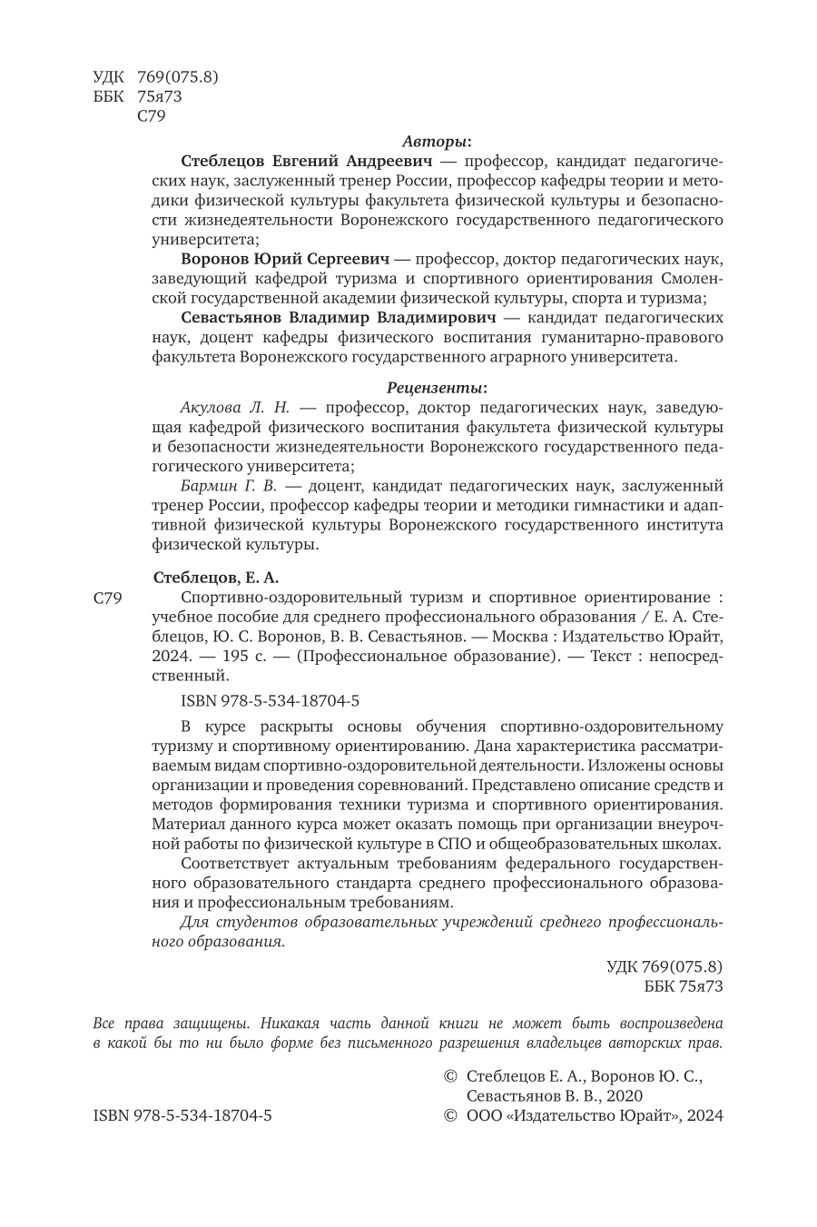 Спортивно-оздоровительный туризм и спортивное ориентирование. Учебное пособие для СПО (Е. А. Стеблецов); ЮРАЙТ, 2024