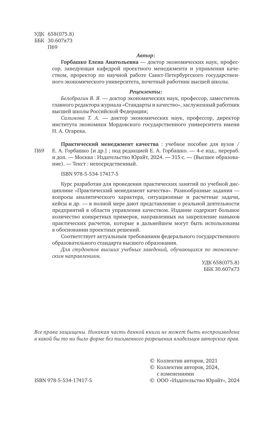 Практический менеджмент качества 4-е изд. пер. и доп. Учебное пособие для вузов (Наталья Юрьевна Четыркина); ЮРАЙТ, 2024