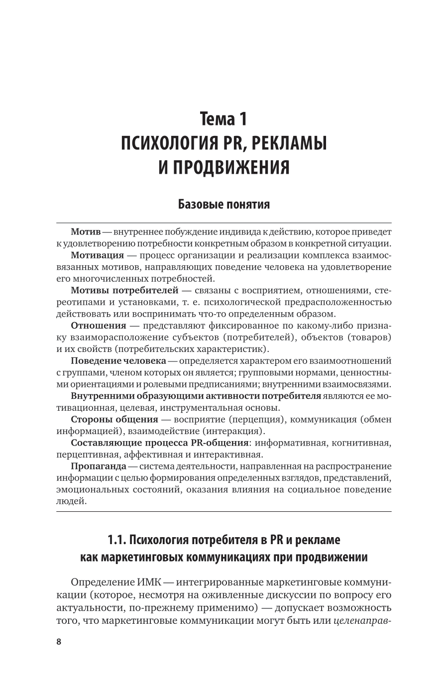 В курсе подробно представлены связи с общественностью (PR) и реклама как важные массовые социальные коммуникации, одна из функций управления и системная маркетинговая коммуникация, раскрыты психологические основы PR и рекламы, рассмотрено множество технологий, методов и приемов информационно-психологического воздействия в рекламных и PR-коммуникациях. Курс обобщает огромное количество литературных источников, авторские материалы, исследования и разработки по проблеме проектирования и реализации PR-кампаний в рамках ИМК и программ продвижения на рынках товаров/услуг/идей. Содержит ценный практический материал для самостоятельной работы в форме кейсов и ситуационных задач. Курс имеет междисциплинарный характер. Первое издание стало победителем международного конкурса в области общественных связей PROBA-IPRA Golden World Awards как «Лучшая работа по теории PR». Соответствует актуальным требованиям федерального государственного образовательного стандарта среднего профессионального образования и профессиональным требованиям. Для студентов образовательных учреждений среднего профессионального образования.