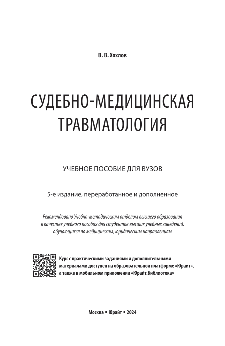 Судебно-медицинская травматология 5-е изд. пер. и доп. Учебное пособие для вузов (Владимир Васильевич Хохлов); ЮРАЙТ, 2024