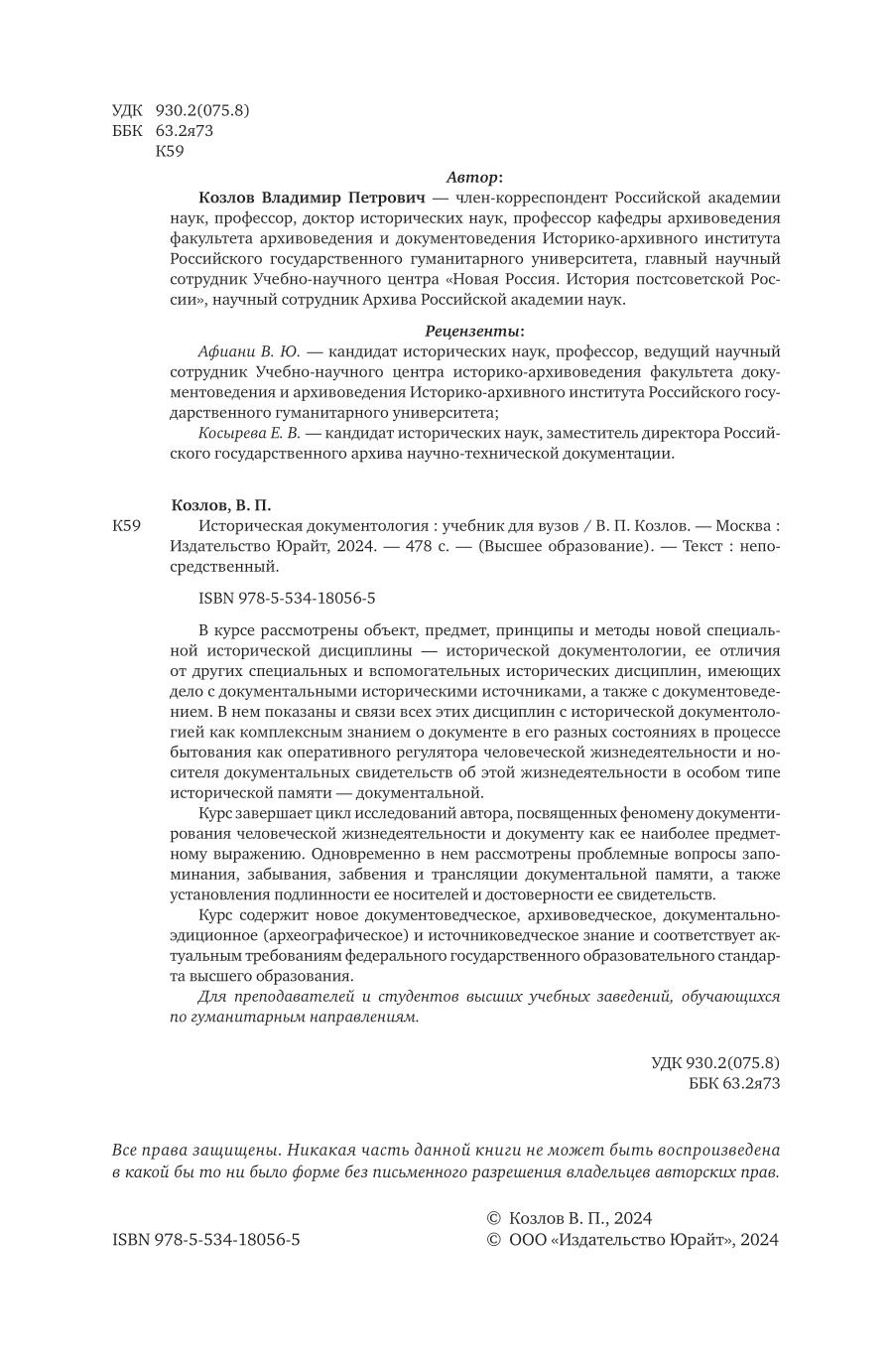 Историческая документология. Учебник для вузов (Владимир Петрович Козлов); ЮРАЙТ, 2024