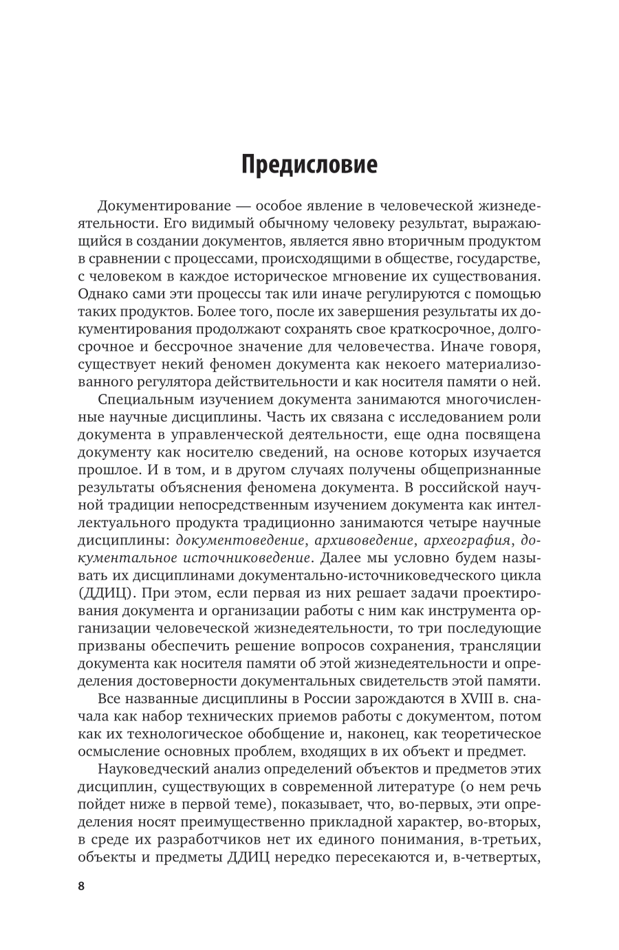 В курсе рассмотрены объект, предмет, принципы и методы новой специальной исторической дисциплины - исторической документологии, ее отличия от других специальных и вспомогательных исторических дисциплин, имеющих дело с документальными историческими источниками, а также с документоведением. В нем показаны и связи всех этих дисциплин с исторической документологией как комплексным знанием о документе в его разных состояниях в процессе бытования как оперативного регулятора человеческой жизнедеятельности и носителя документальных свидетельств об этой жизнедеятельности в особом типе исторической памяти - документальной. Курс завершает цикл исследований автора, посвященных феномену документирования человеческой жизнедеятельности и документу как ее наиболее предметному выражению. Одновременно в нем рассмотрены проблемные вопросы запоминания, забывания, забвения и трансляции документальной памяти, а также установления подлинности ее носителей и достоверности ее свидетельств. Курс содержит новое документоведческое, архивоведческое, документально-эдиционное (археографическое) и источниковедческое знание и соответствует актуальным требованиям федерального государственного образовательного стандарта высшего образования. Для преподавателей и студентов высших учебных заведений, обучающихся по гуманитарным направлениям.