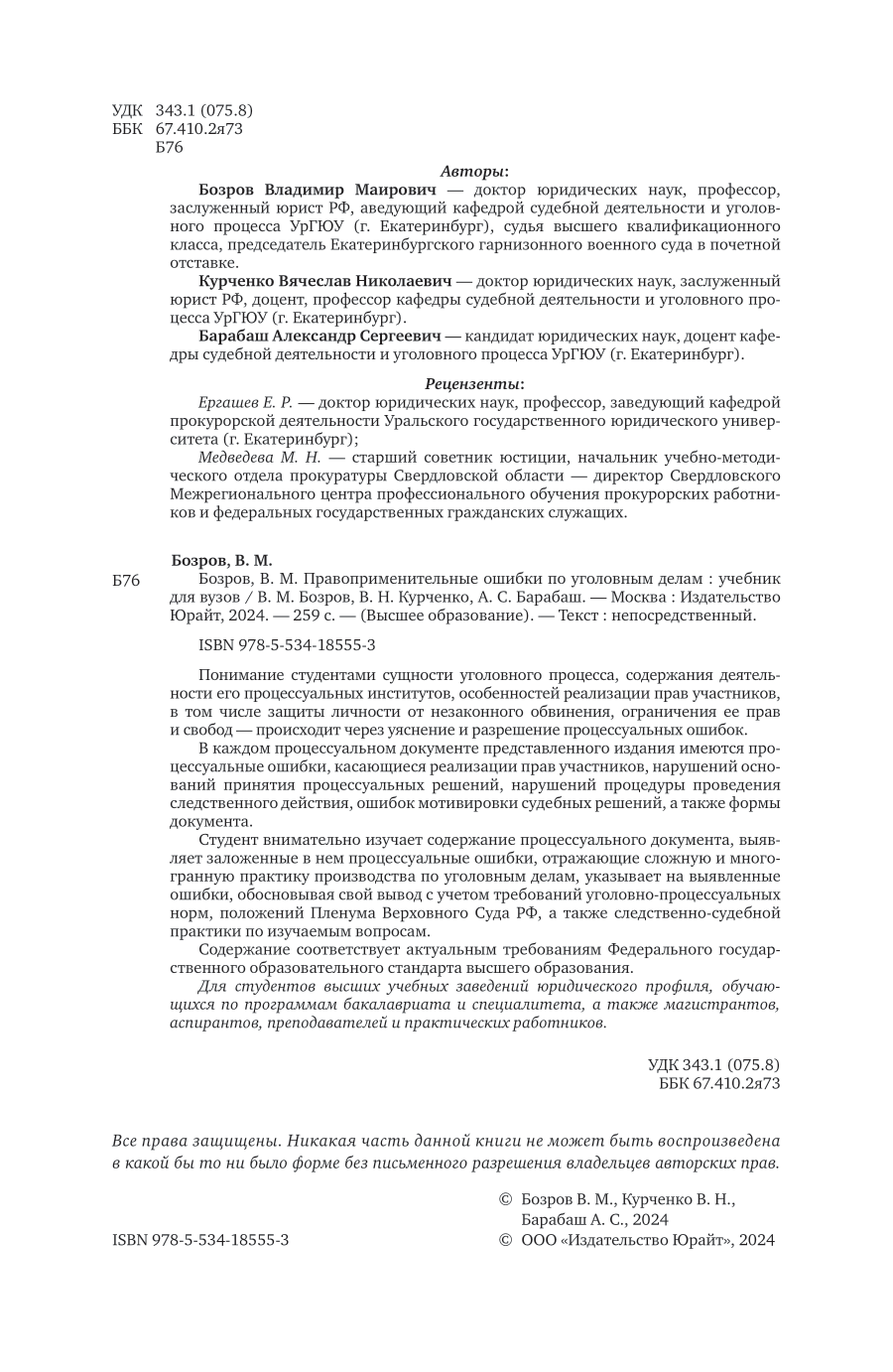 Правоприменительные ошибки по уголовным делам. Учебник для вузов (Вячеслав Николаевич Курченко); ЮРАЙТ, 2024